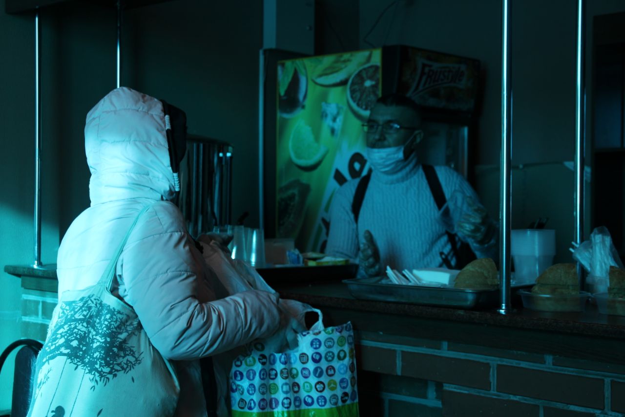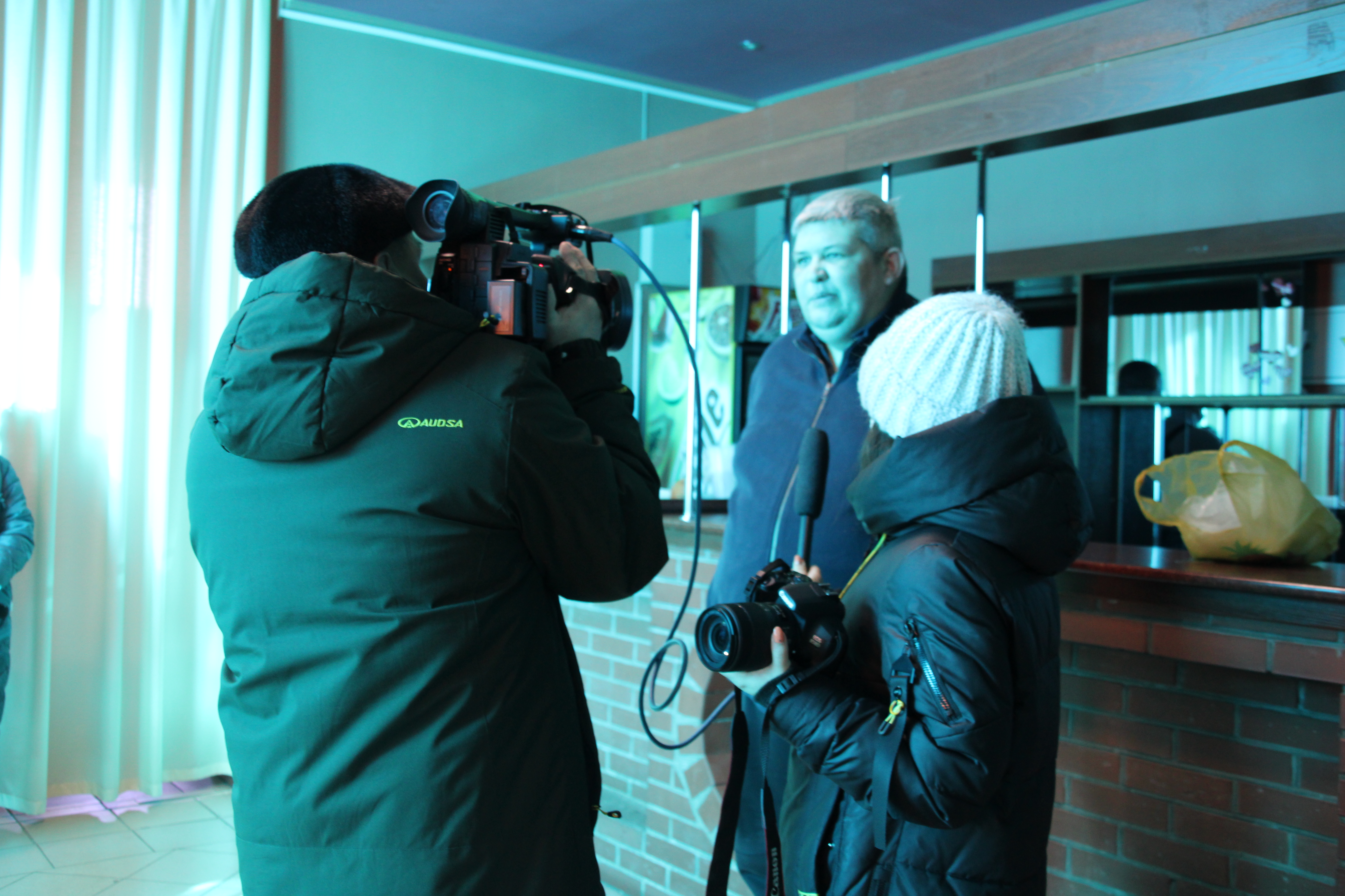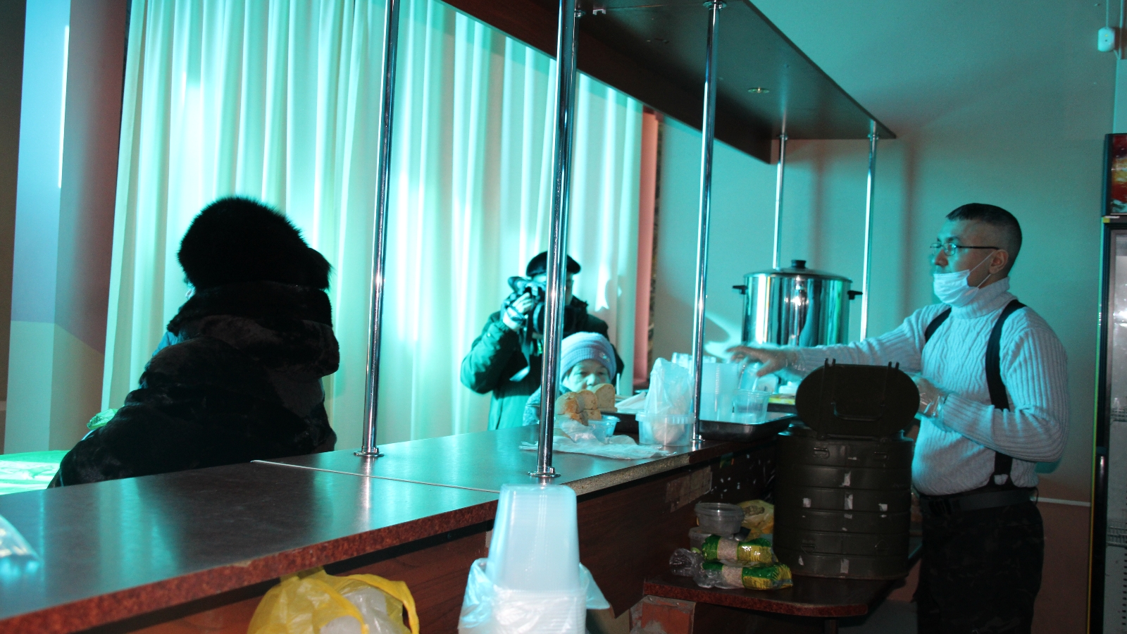 45 человек ,приглашенные председателями ТОСов, в РДК "Юность" могли поесть горячую кашу, попить чай, взять маски и еду в контейнерах домой.