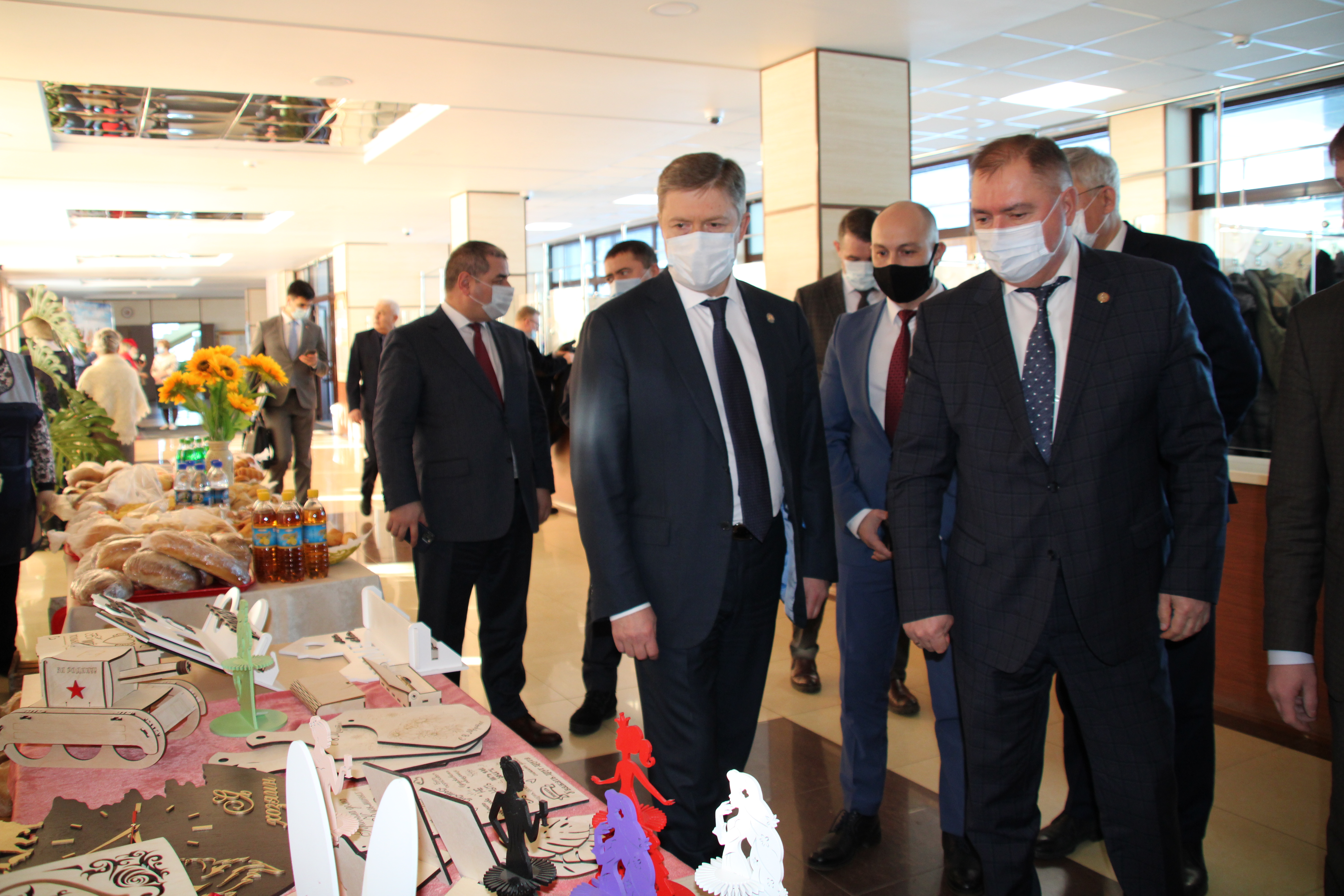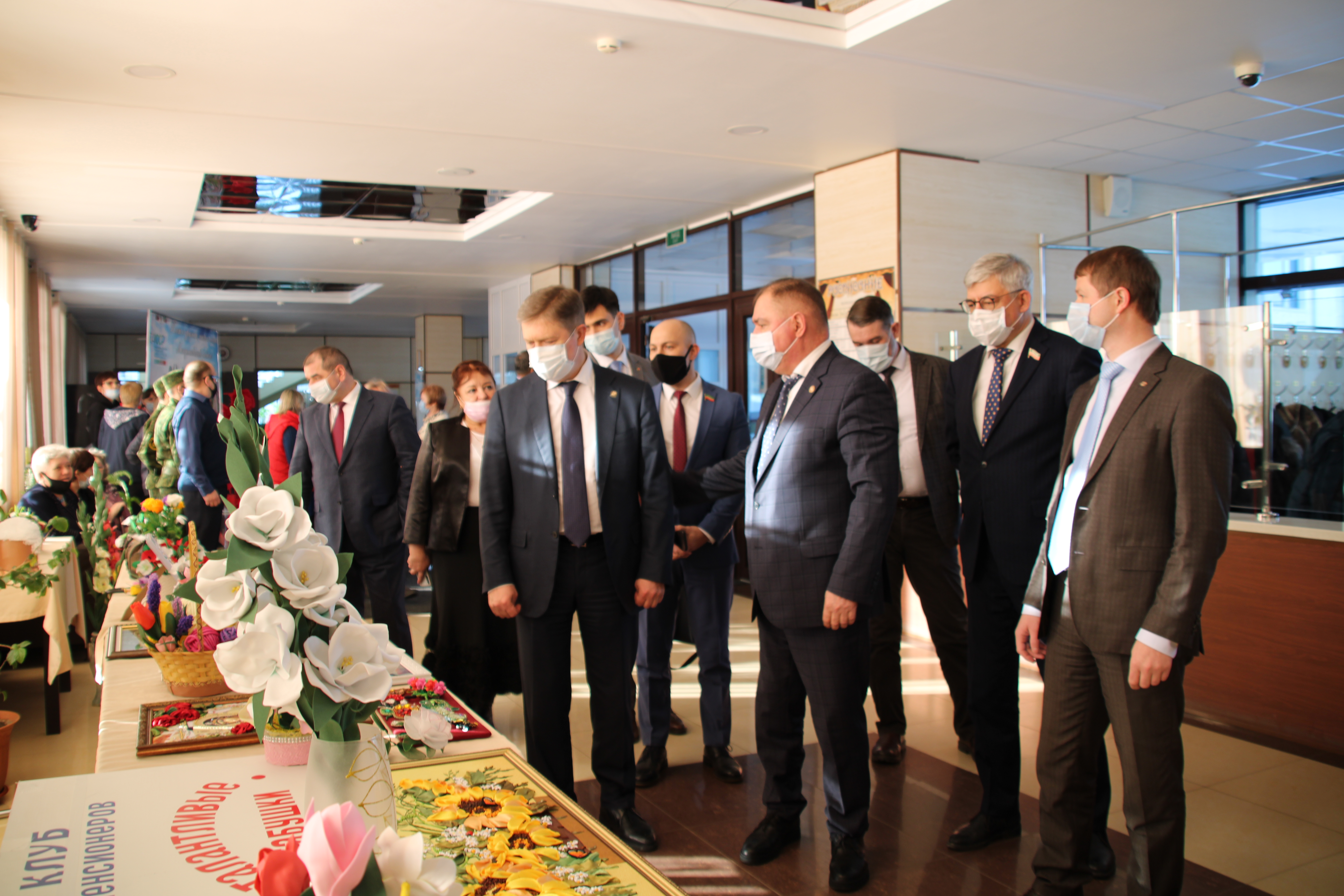 Перед началом для участников заседания были презентованы рукодельные изделия членов клуба "Талантливые бабушки", который существует уже 7 лет; продукция Райпо, фермерских хозяйств и самозанятых района, ведущих предприятий района "«Шифалы су-Ижминводы», АО "Аммония" и АО "Хим.завод им. Л.Я.Карпова" .
