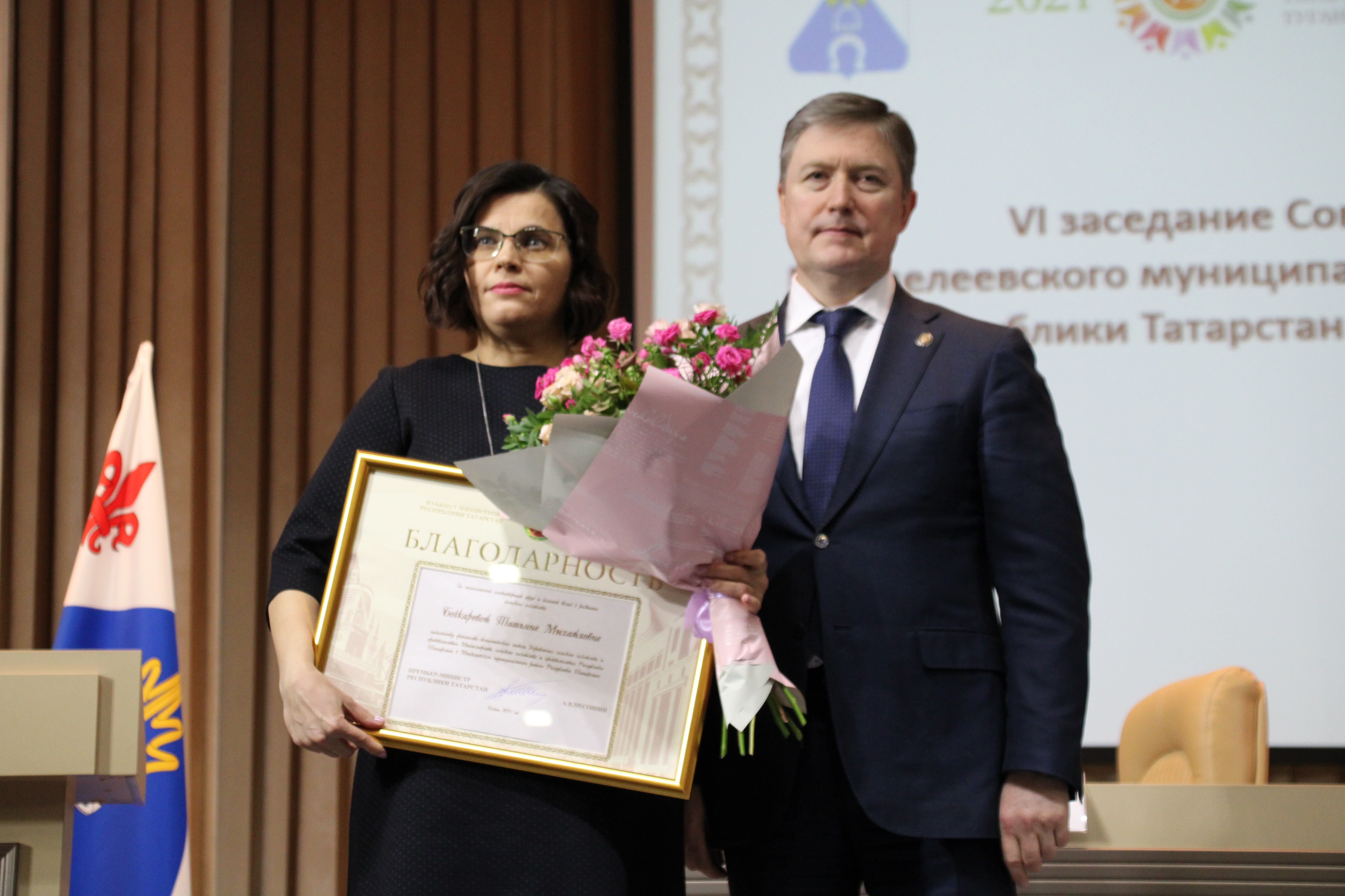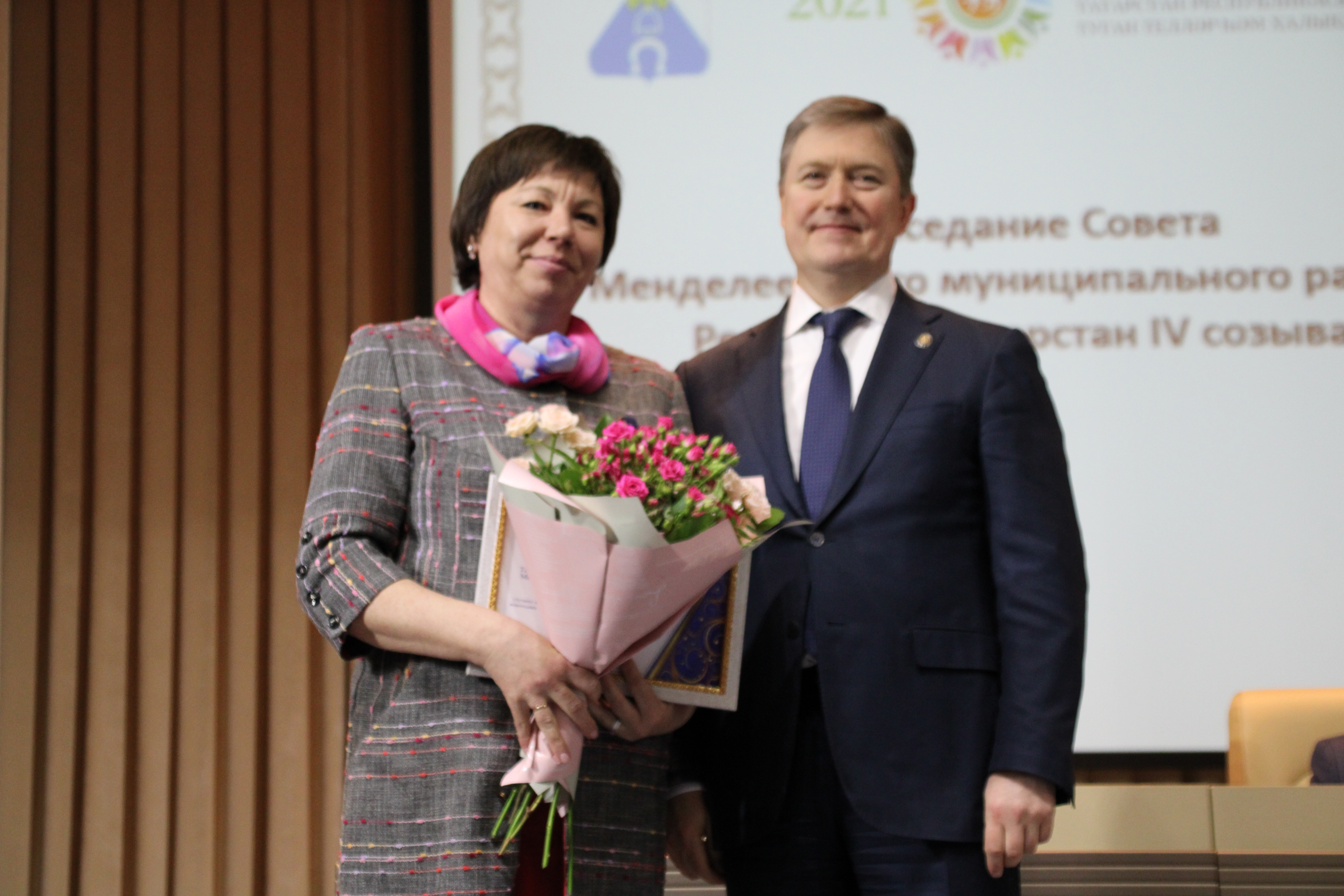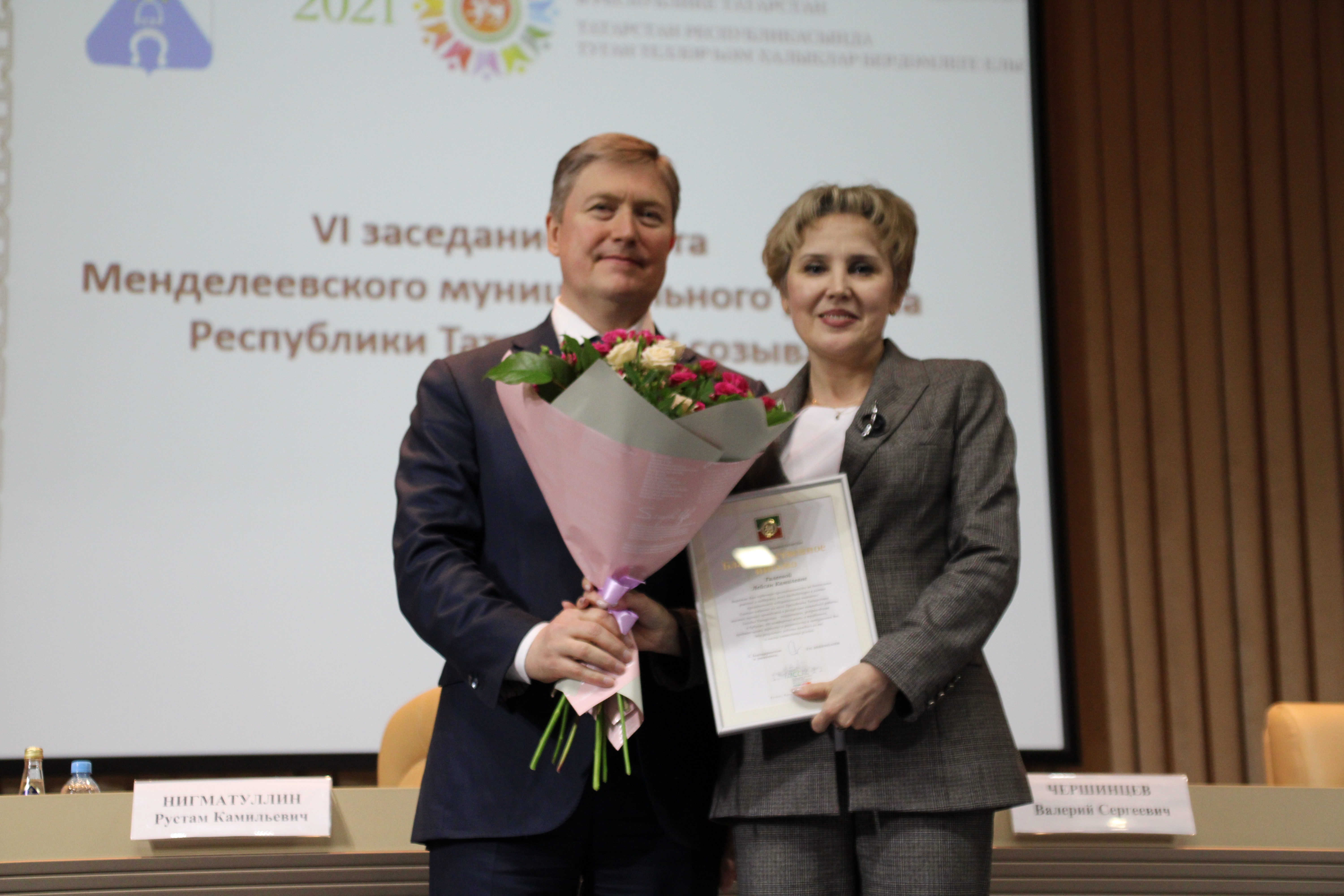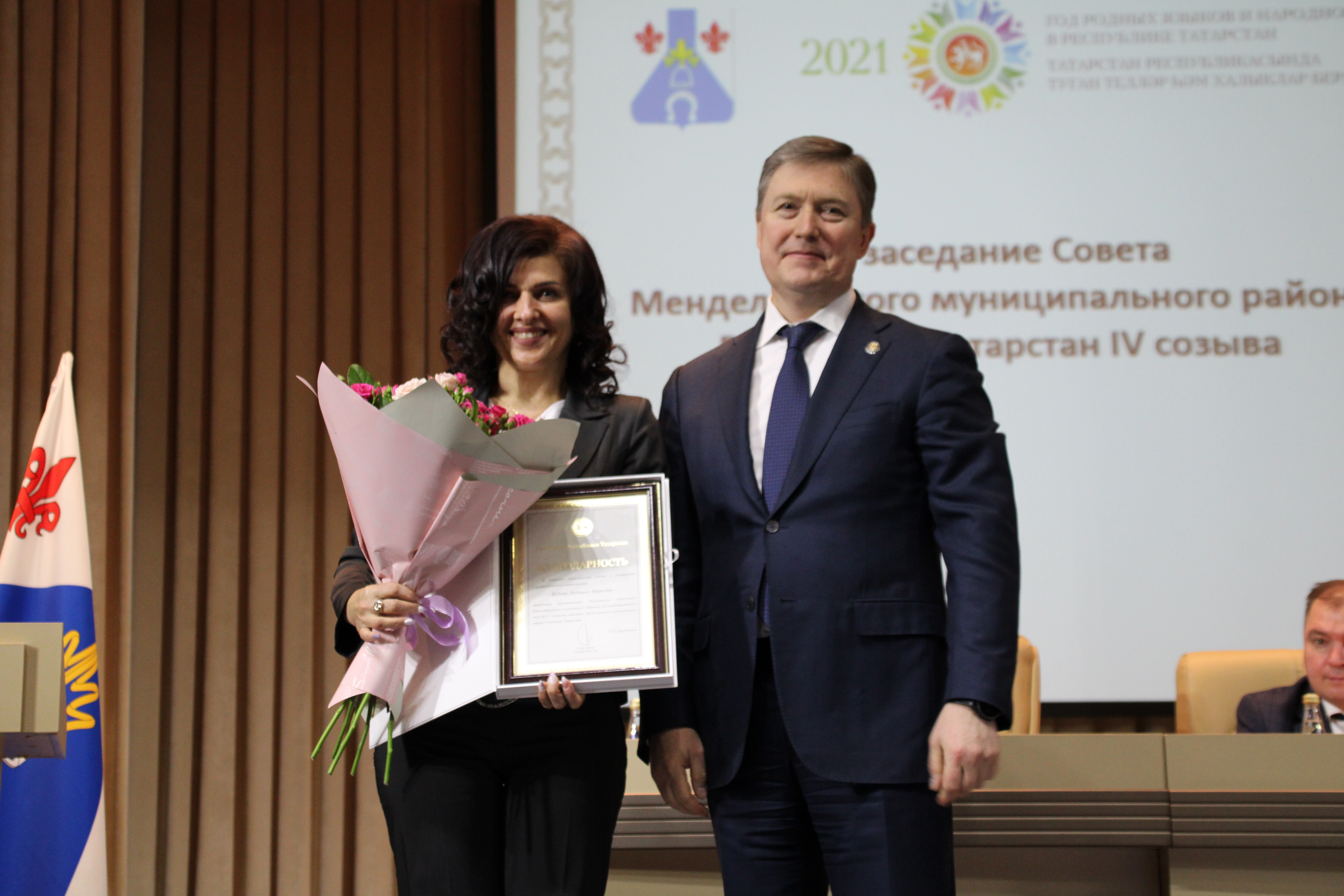 - Благодарственным письмом Президента РТ за деятельно участие и поддержку в рамках президентской избирательной кампании была награждена Лейсан Галеева - заместитель Главы Менделеевского района