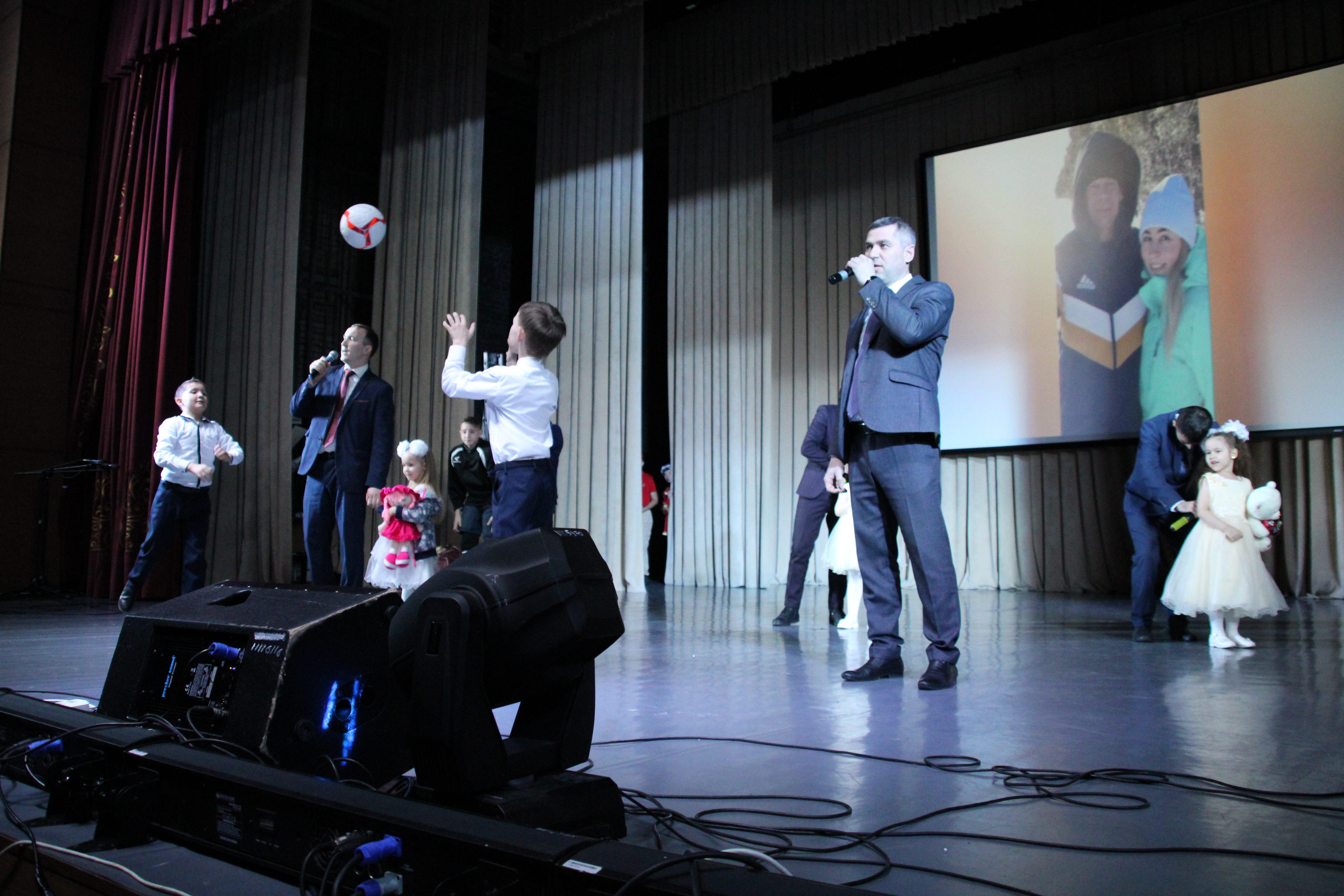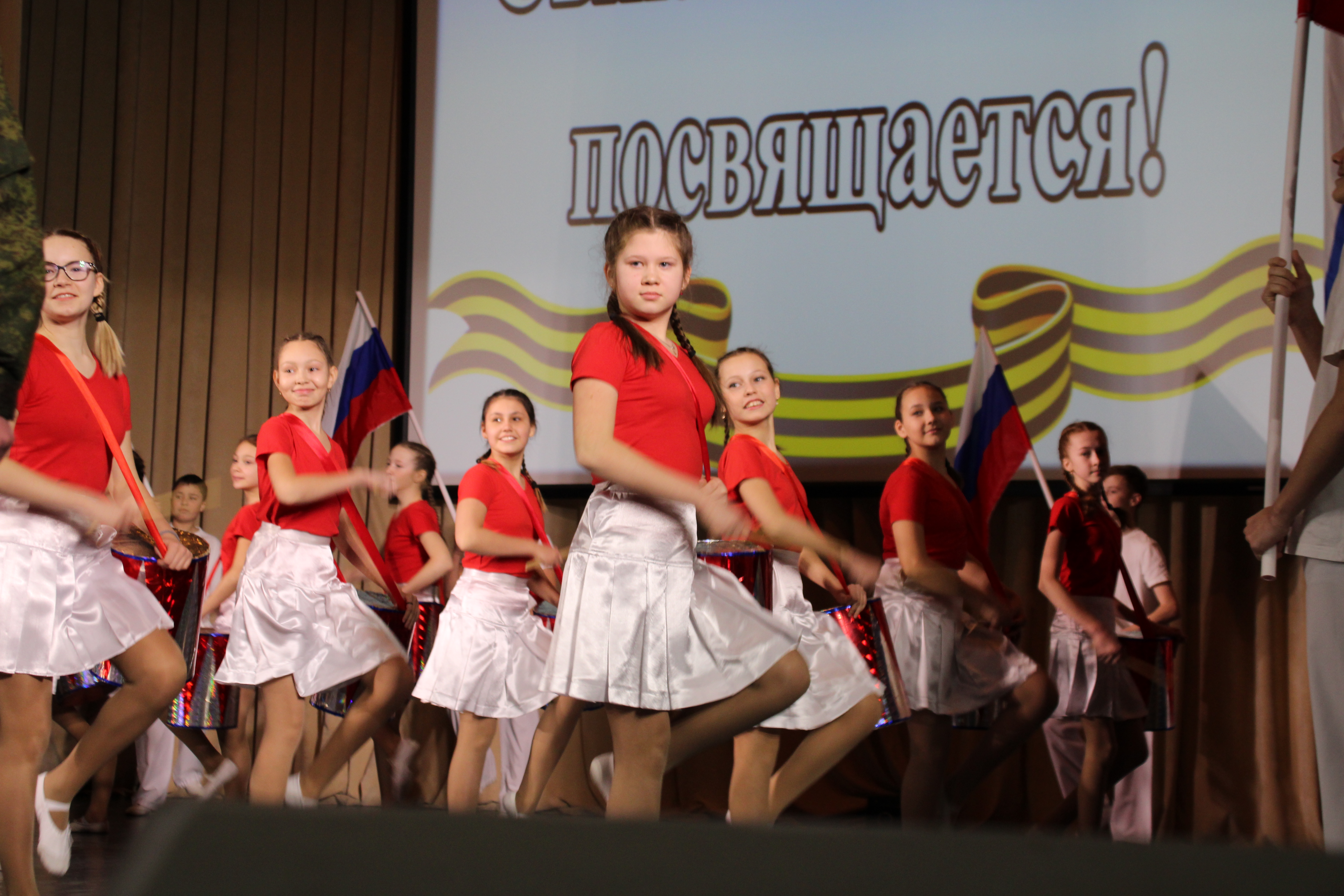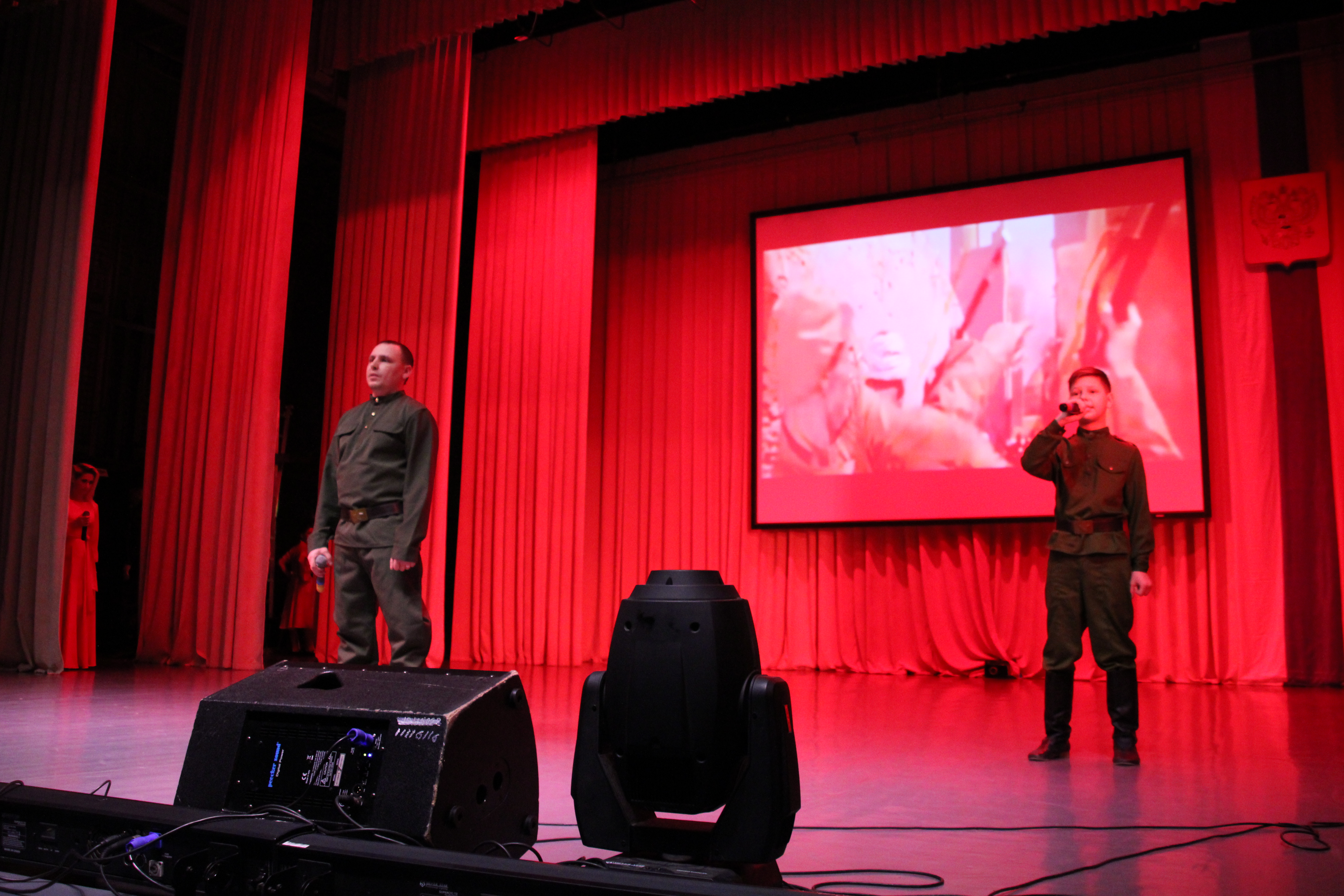 Праздник продолжился яркими военно-патриотическими танцами и песнями. В концерте помимо самих творческих коллективов города, также приняли участие воспитанники детского сада №7, юнармейцы школы №1, педагоги Детской школы искусств, руководители организаций района. Одним из номеров, который растрогал каждого зрителя, стала песня "Когда я стану большим" в исполнении отцов - руководителей организаций со своими детьми.