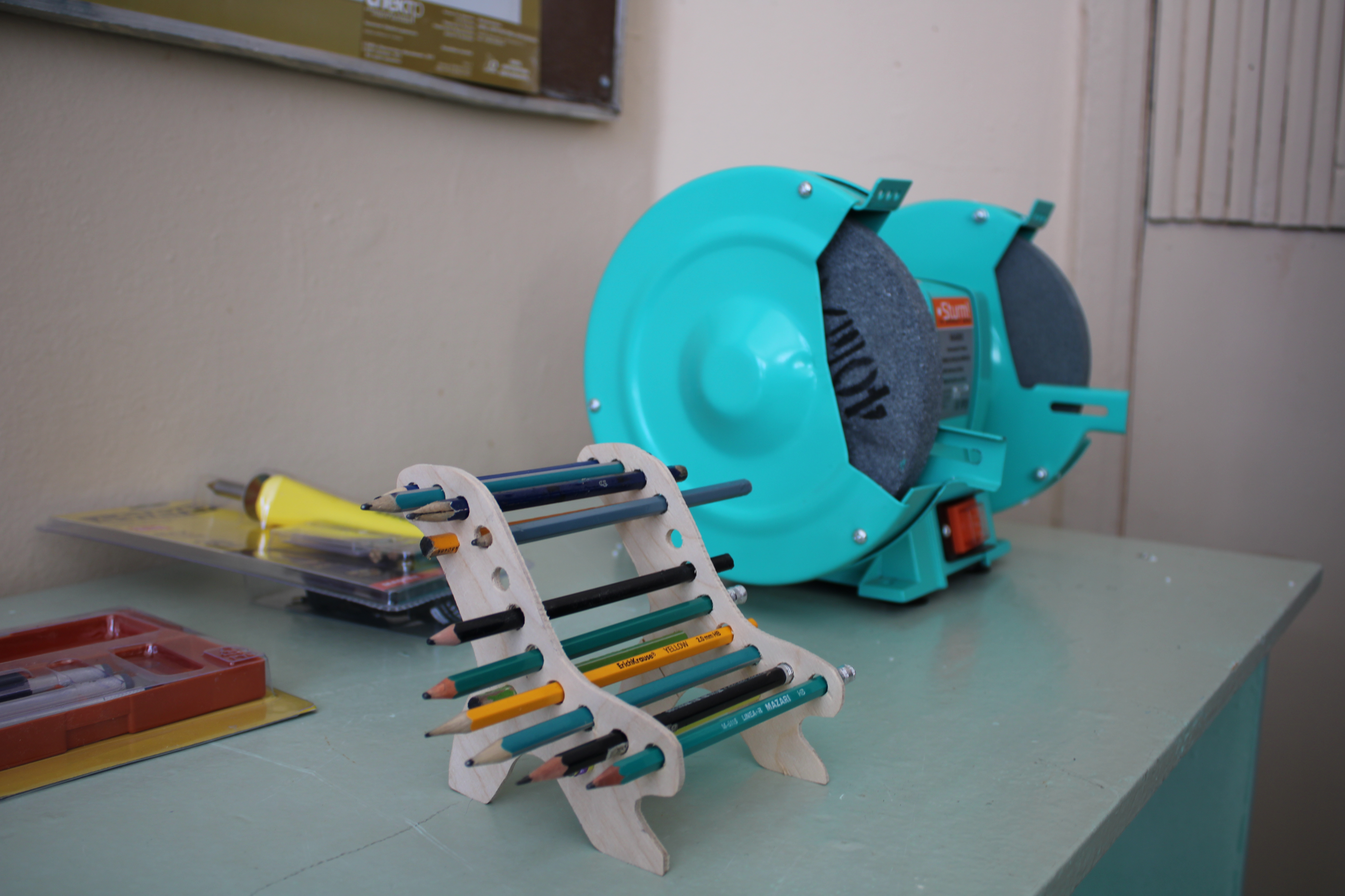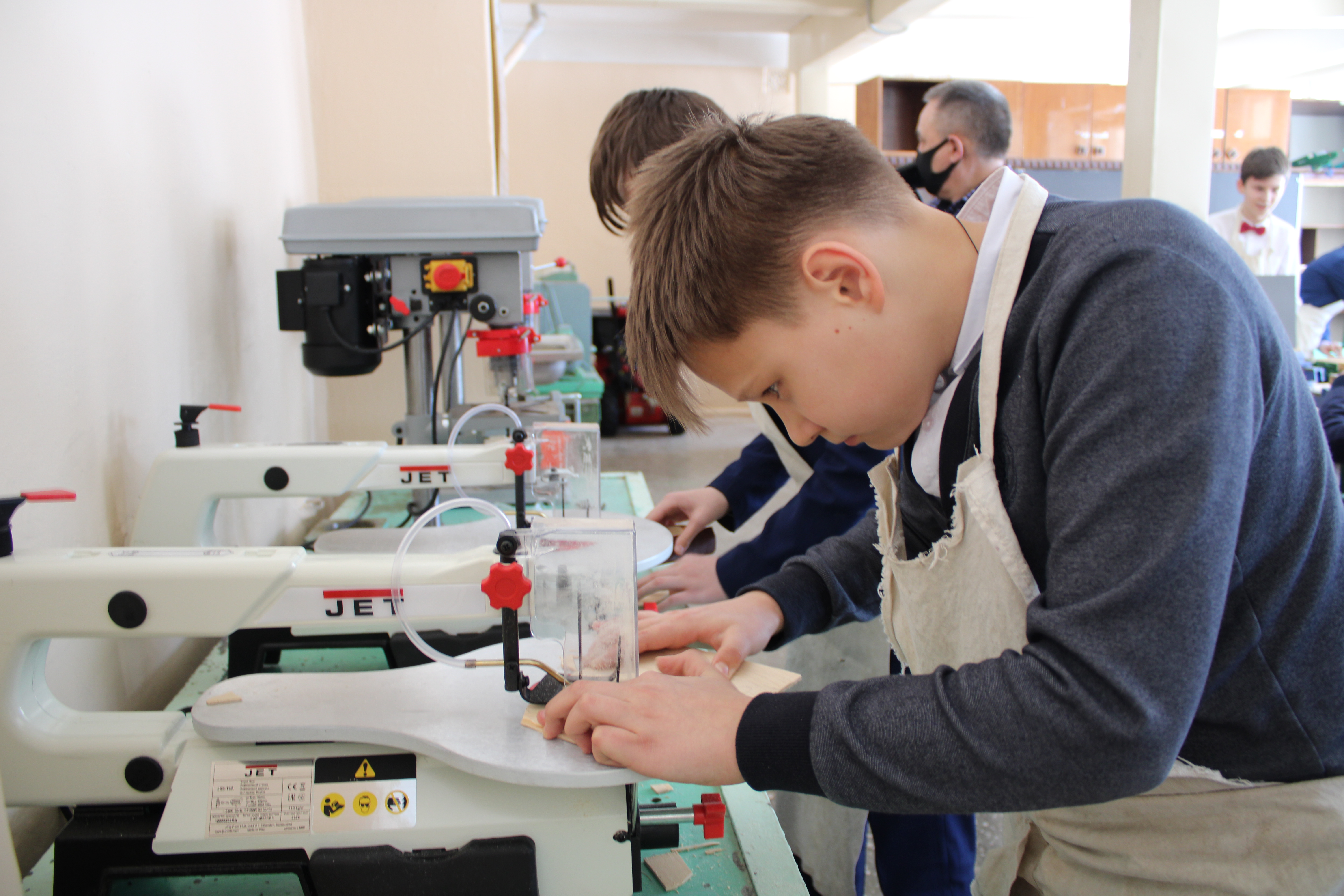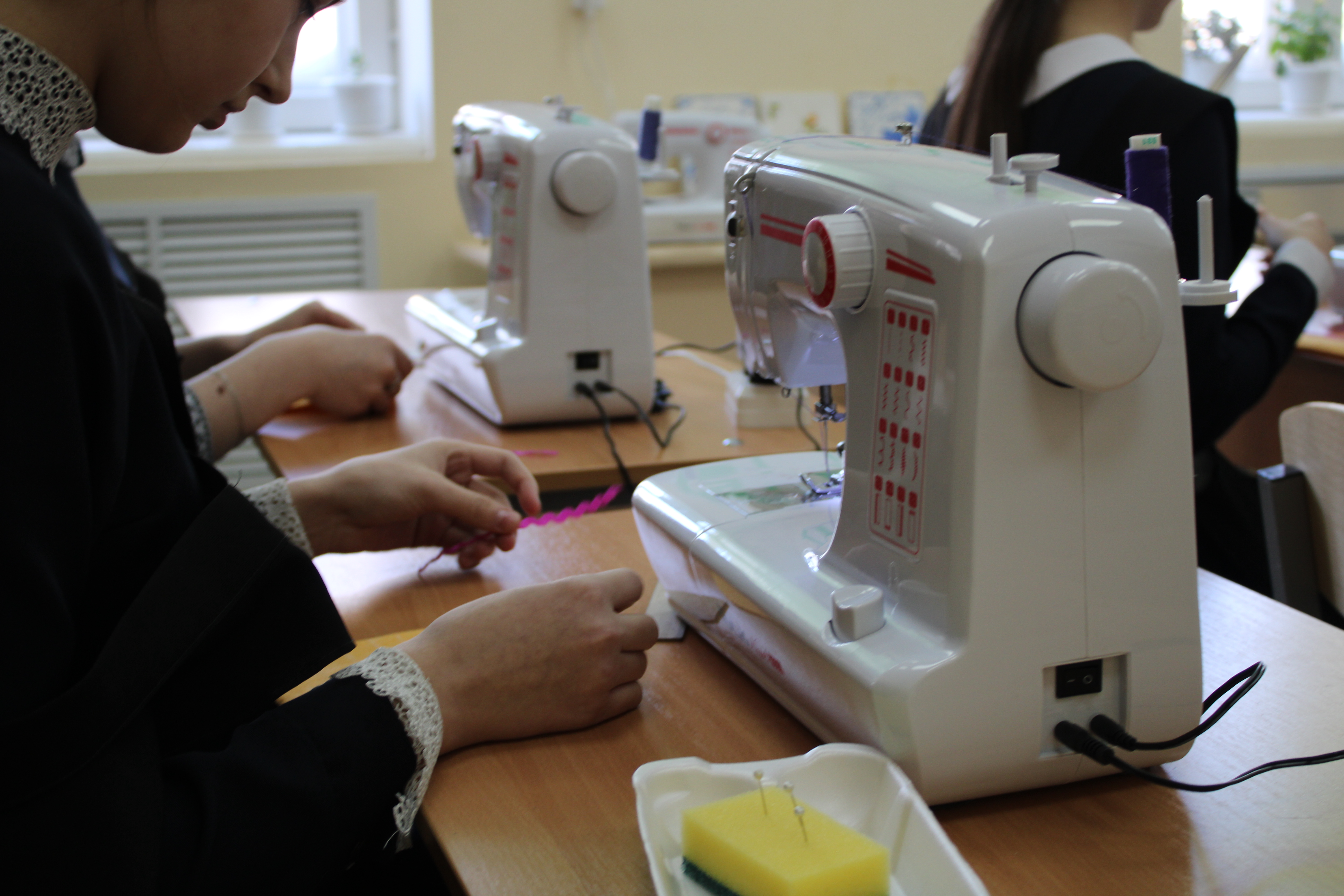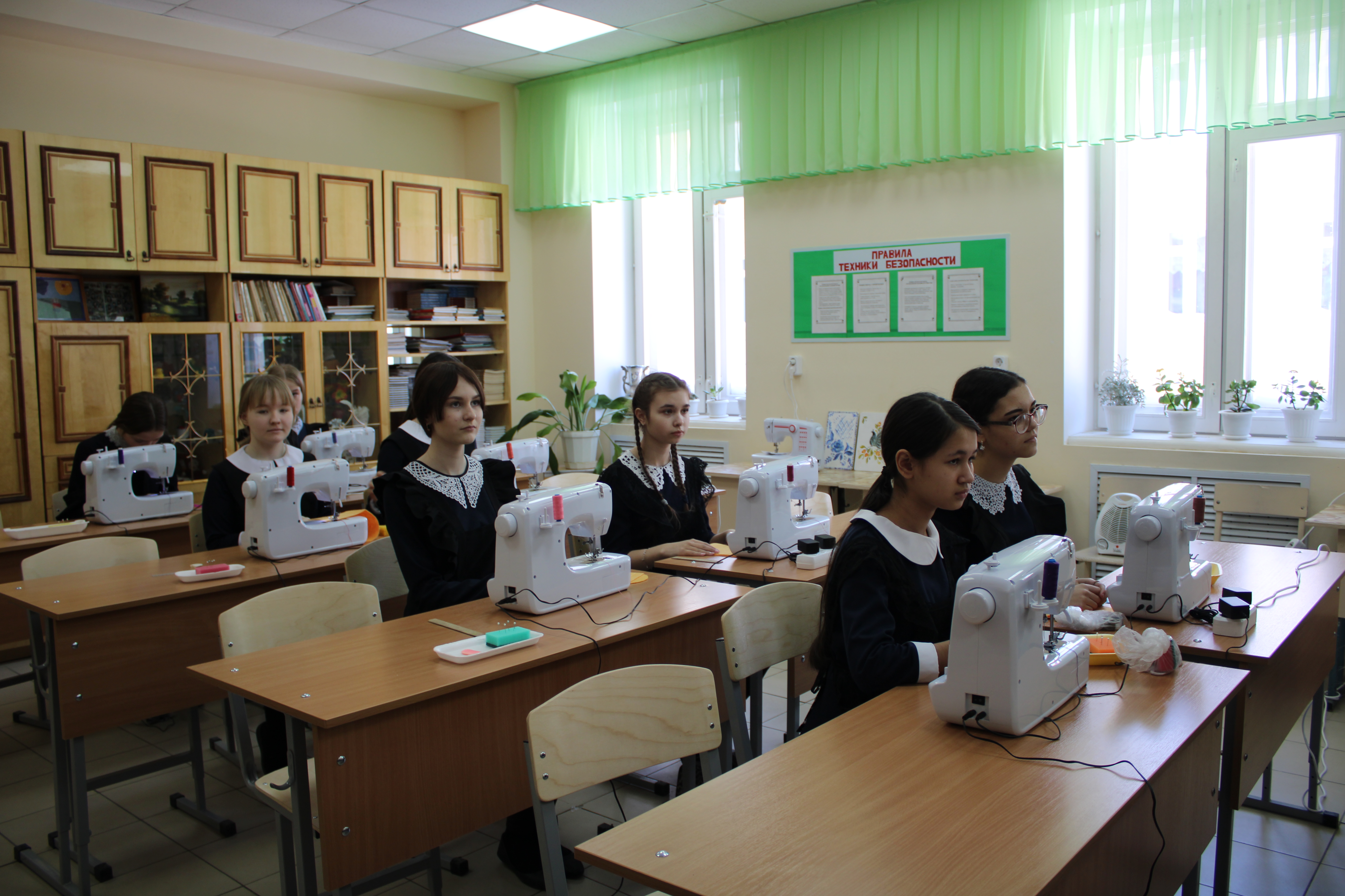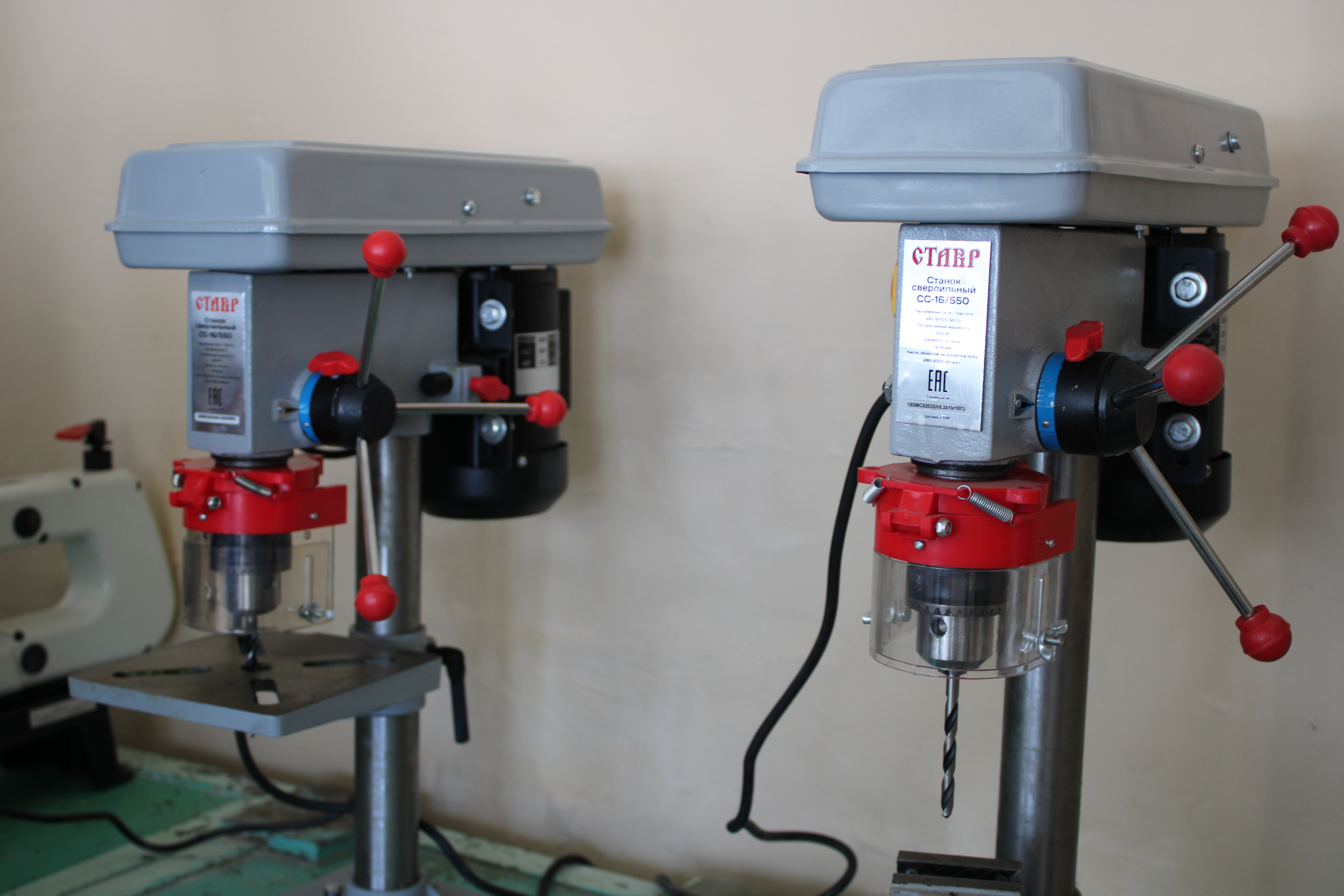 Для уроков по технологии для девочек (домоводство) приобрели 17 швейных машинок; для уроков по технологии для мальчиков (мастерская) - 15 штук верстаков, набор слесарных и столярных инструментов по 15 штук, 1 заточный и 2 сверлильных станков, 15 паяльников, 20 электровыжигателей, шлифовальные машинки 2 штуки.