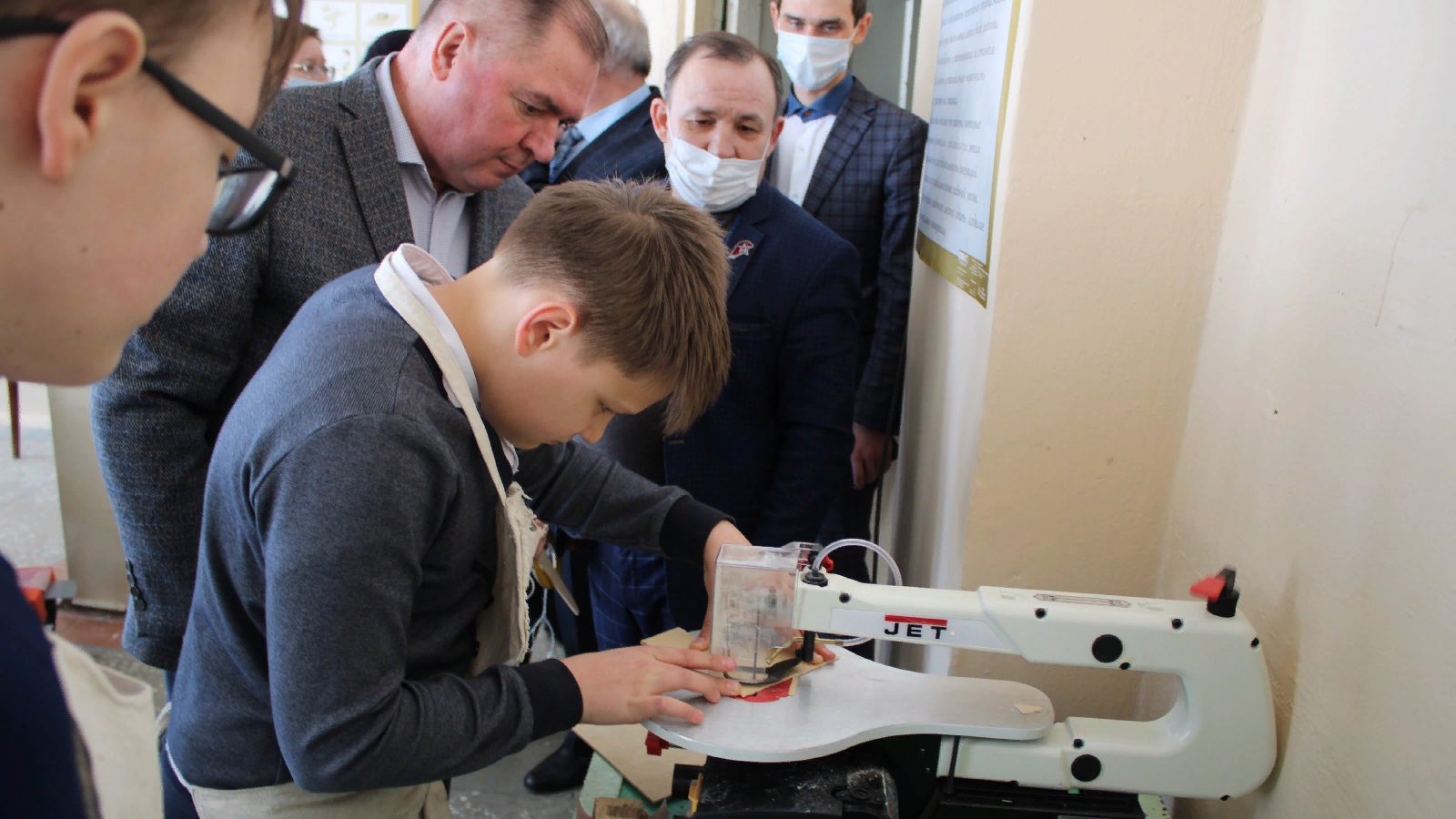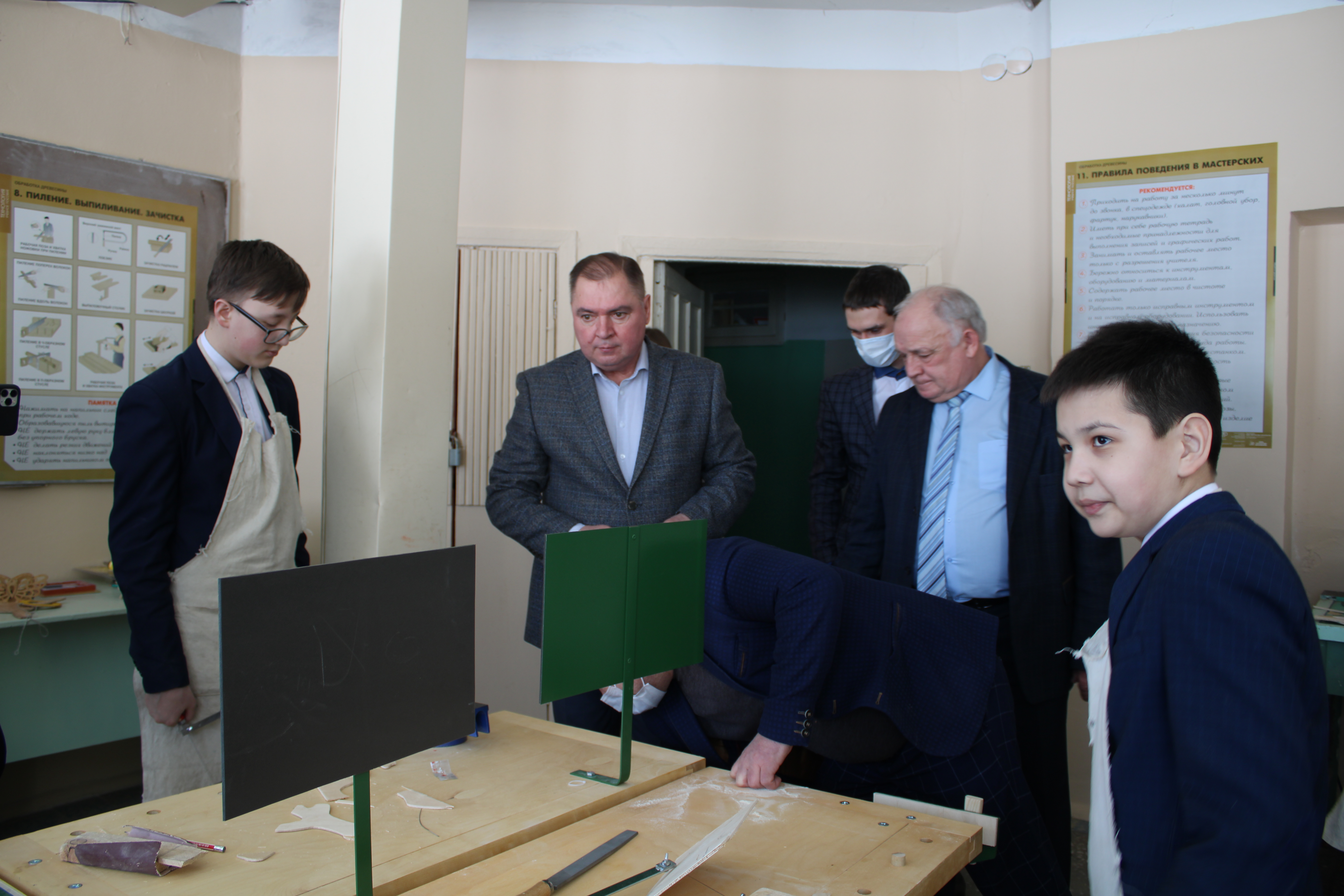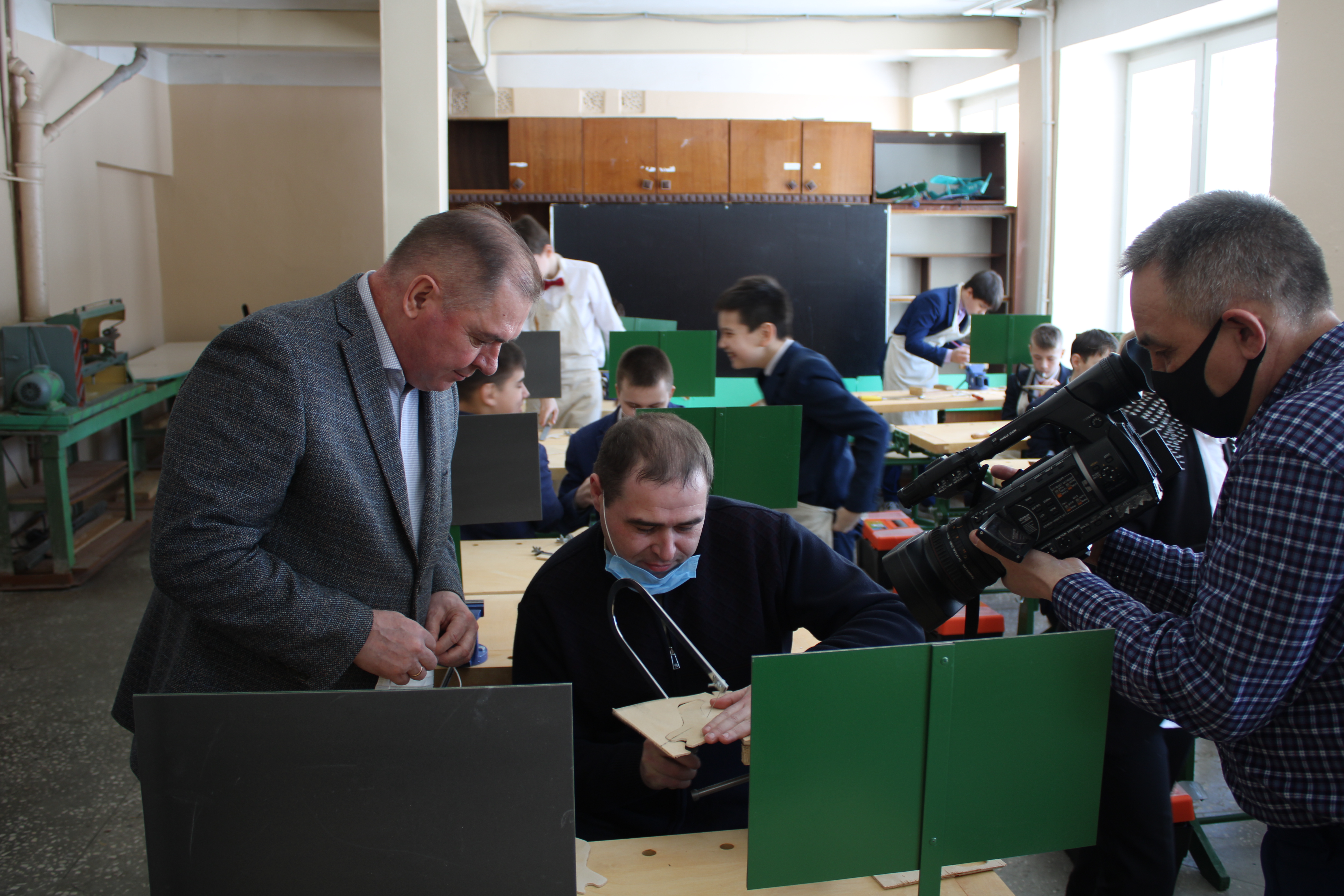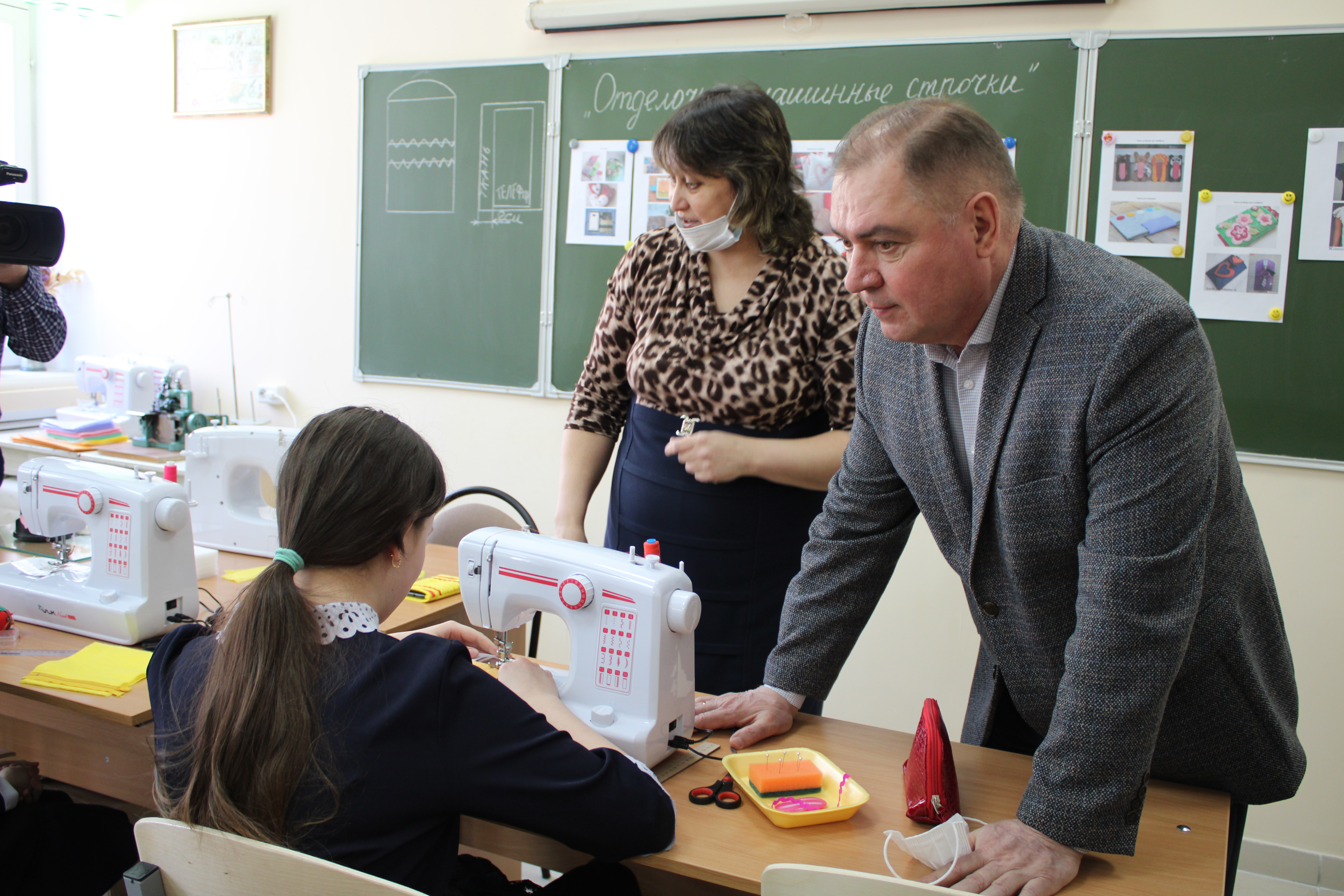 Глава района Валерий Чершинцев посетил уроки технологии у девочек и мальчиков и сам проверил, как дети занимаются.