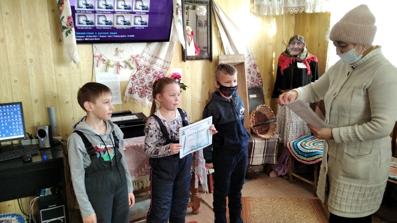 Цель этого мероприятия формировать бережное отношение к родному языку, гордость за свой родной язык, чувство принадлежности к своим предкам и культуре. Дети познакомились с презентацией «Путешествие в историю языка», с биографией В. Даля великого составителя «Толкового словаря живого и великорусского языка». Также дети приняли активное участие в конкурсе «Любите русский язык». Они читали стихи, разгадывали загадки, собирали пословицы. За участие дети получили сертификат и сладкие призы.