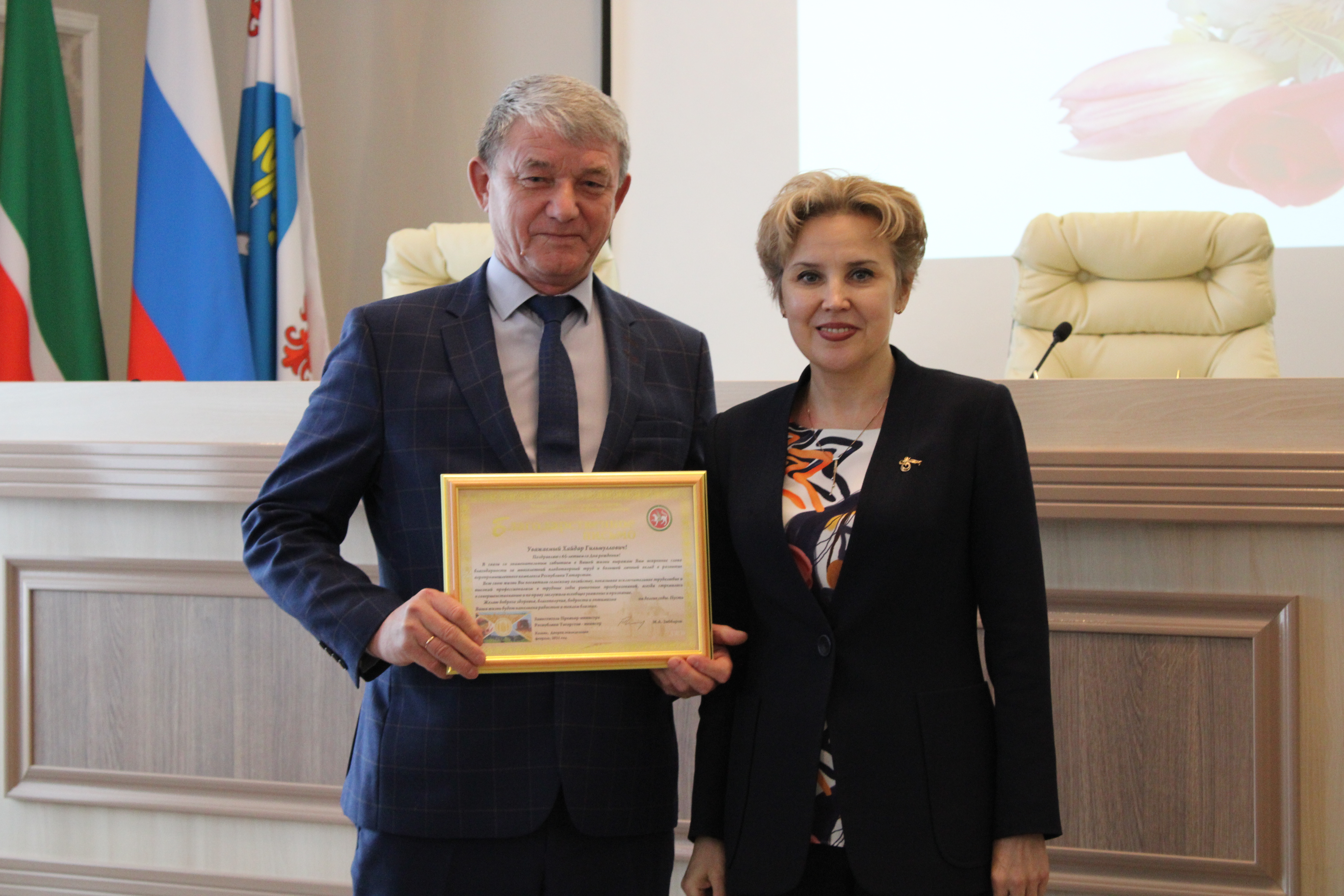 Благодарственным письмом Министерства сельского хозяйства и продовольствия РТ за многолетний плодотворный труд, большой личный вклад в развитие сельского хозяйства РТ и в связи с юбилеем со Дня рождения наградили Хайдара Хадиуллина – ветерана агропромышленного комплекса ММР.