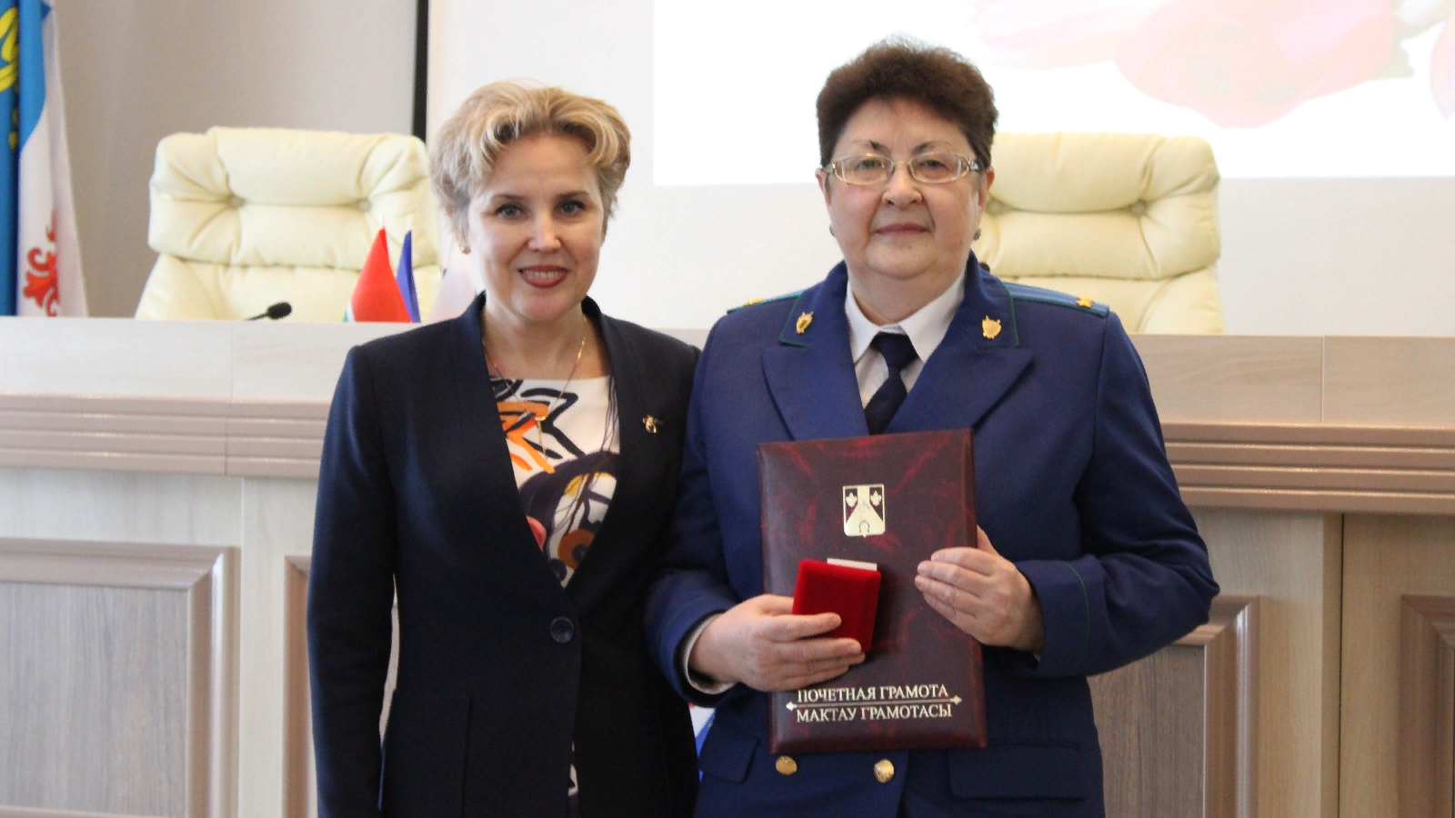 Почетной грамотой Главы района и памятной медалью 35-летия Менделеевского района за многолетний добросовестный труд и большой вклад в повышение уровня правовой культуры населения, профилактике и предупреждению преступности в районе была награждена Гузяль Хабибуллина - заместитель прокурора Менделеевского района, советник юстиции.