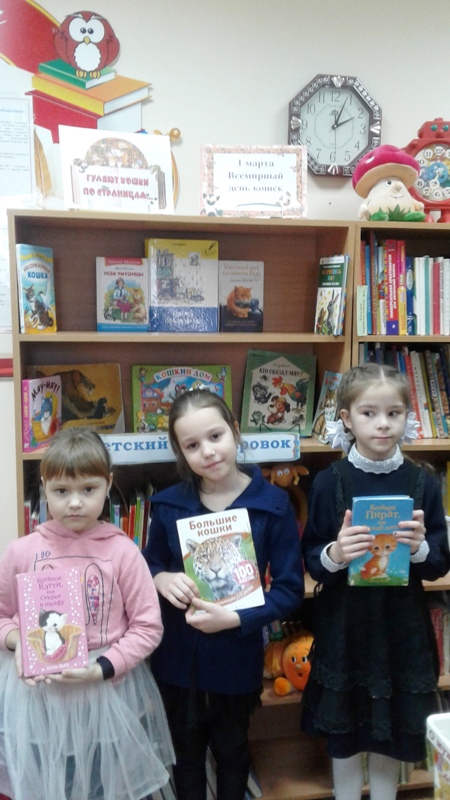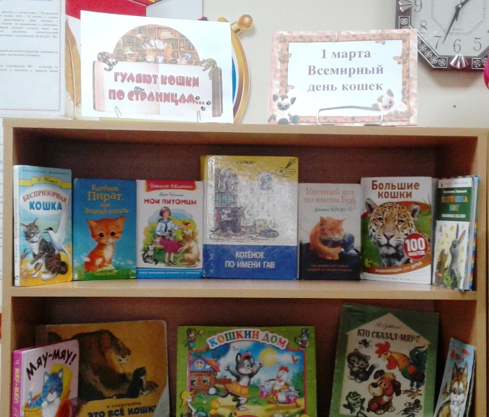 Мало найдется в мире людей, кто остается равнодушным к этим пушистым, ласковым и очень умным домашним животным. Речь идет, конечно, о кошках. Любовь к ним оказалась настолько большой, что для всеобщих любимцев был учрежден специальный праздник, который отмечается в России в первый день весны, 1 марта. В этот день в Детской библиотеке была организованна выставка «Гуляют кошки по страницам».