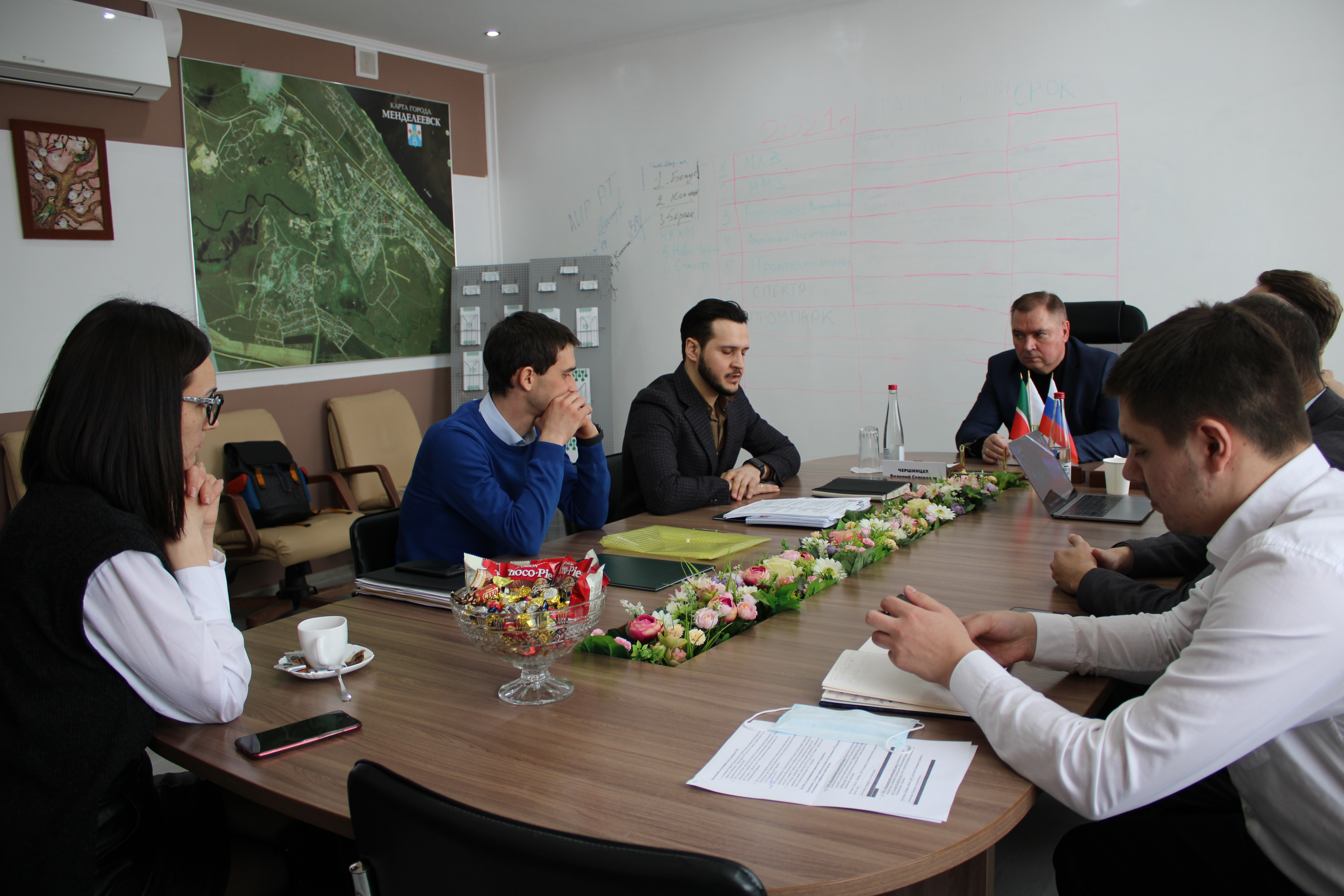 Сегодня в администрации состоялась встреча Главы района Валерия Чершинцева, руководителя Исполкома Рустема Абдуллина и специалистов по ТОСЭР с потенциальным инвестором. Целью встречи стало обсуждение создания на территории муниципального образования г. Менделеевск промышленного парка.