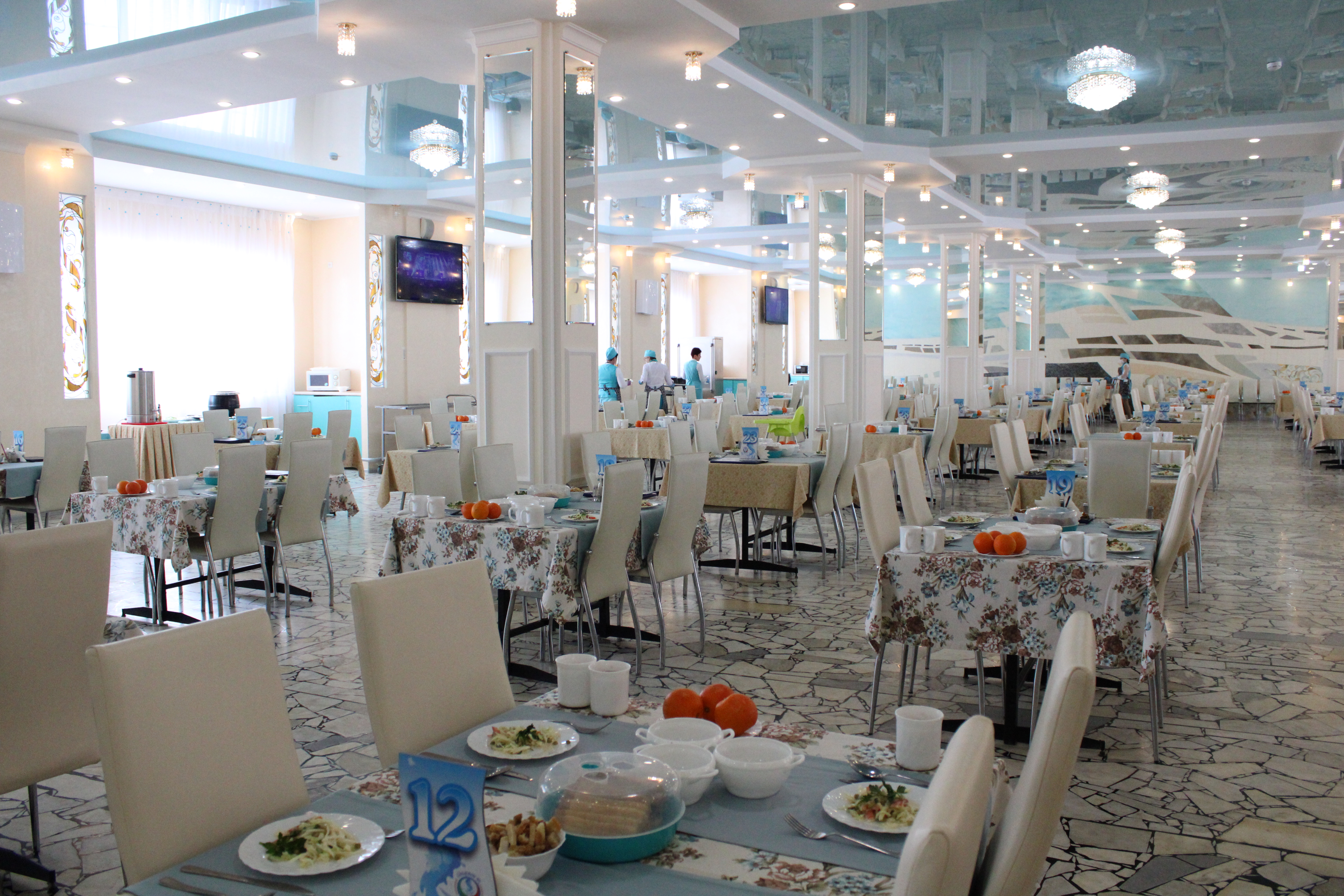 Руководитель санатория "Шифалы су-Ижминводы" Салим Хабибуллин и главврач санатория Роза Снадина провели для гостей экскурсию по оздоровительному центру, рассказали о работе учреждения, о функционирующих кабинетах, где проводят оздоровительные и релаксирующие процедуры.