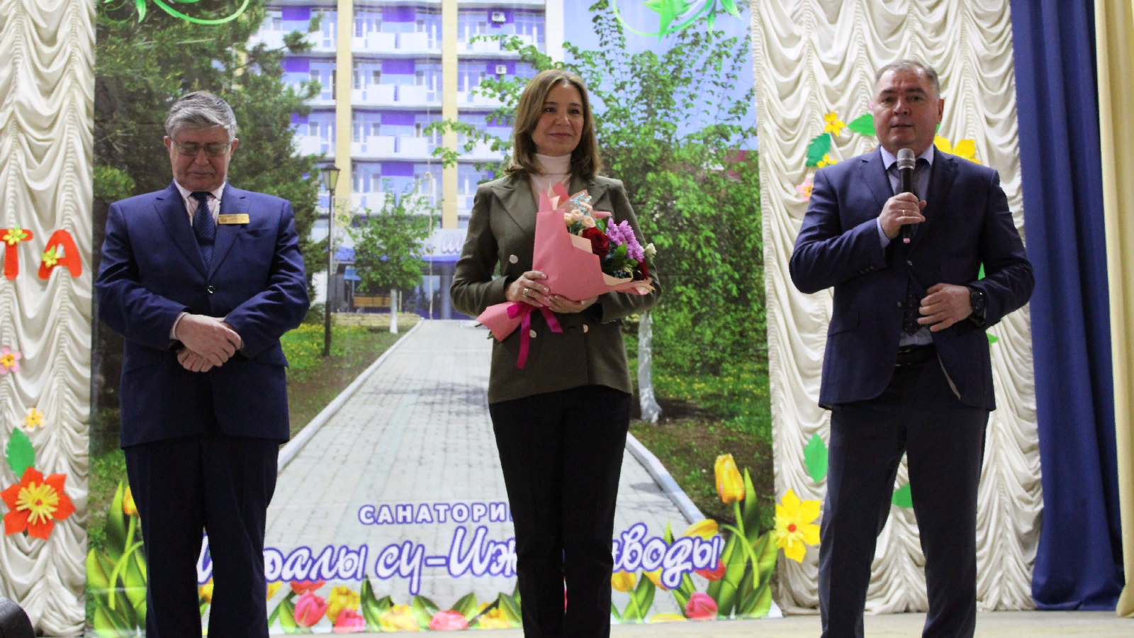 Далее делегация побывала на концерте, организованном в преддверии Международного женского дня, где Глава района, депутат Государственной Думы РФ и руководитель санатория поздравили всех представительниц прекрасного пола с праздником.