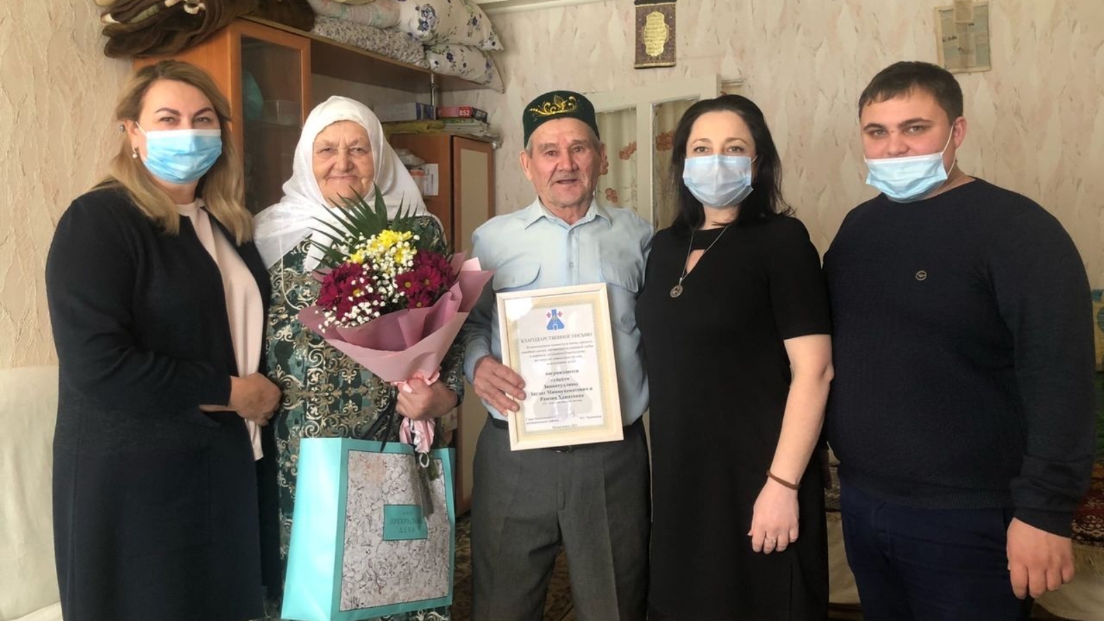 С поздравительной миссией у них побывали заместитель руководителя исполкома по социальным вопросам Екатерина Ямалеева, начальник отдела ЗАГС Татьяна Алексеева, глава Бизякинского поселения Ильмир Кашафутдинов.