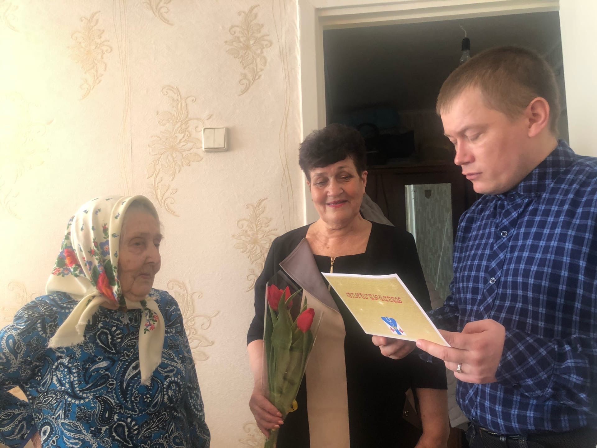 У ветеранов с поздравительной миссией побывали заместитель руководителя исполкома по городскому хозяйству и ЖКХ Сергей Метальников, председатель Совета ветеранов Любовь Сорокина.