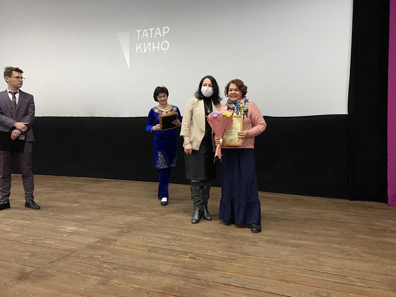 К присутствующим обратились заместитель руководителя по социальным вопросам Екатерина Ямалеева и директор кинотеатра «Юность» Миляуша Канипова.