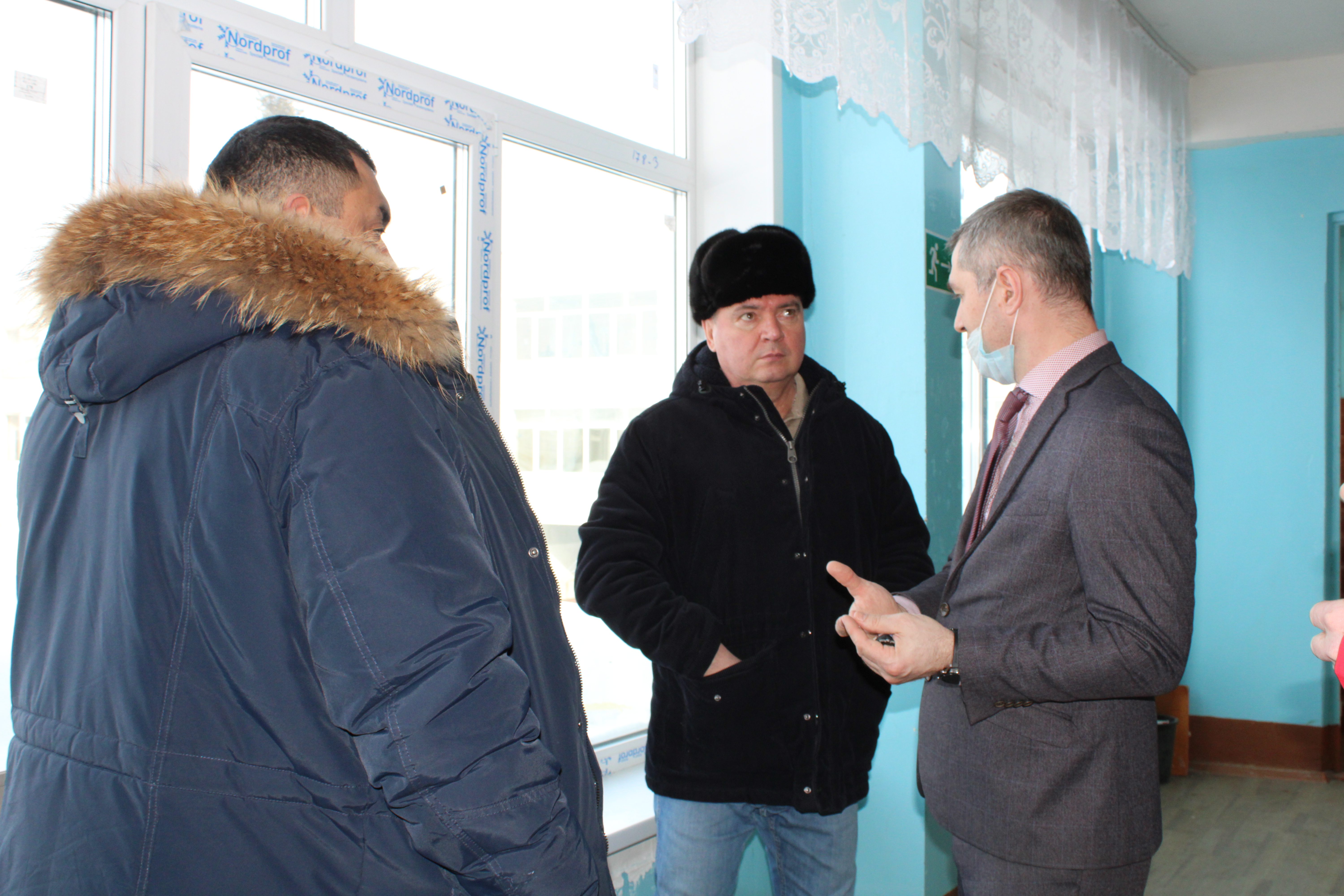 Глава района Валерий Чершинцев совместно с и.о. первого заместителя руководителя по строительству, ЖКХ и инфраструктурному развитию Артуром Захаряном и подрядчиком провели осмотр школ района, в которых в текущем году производится капитальный ремонт в рамках нацпроекта "Образование".