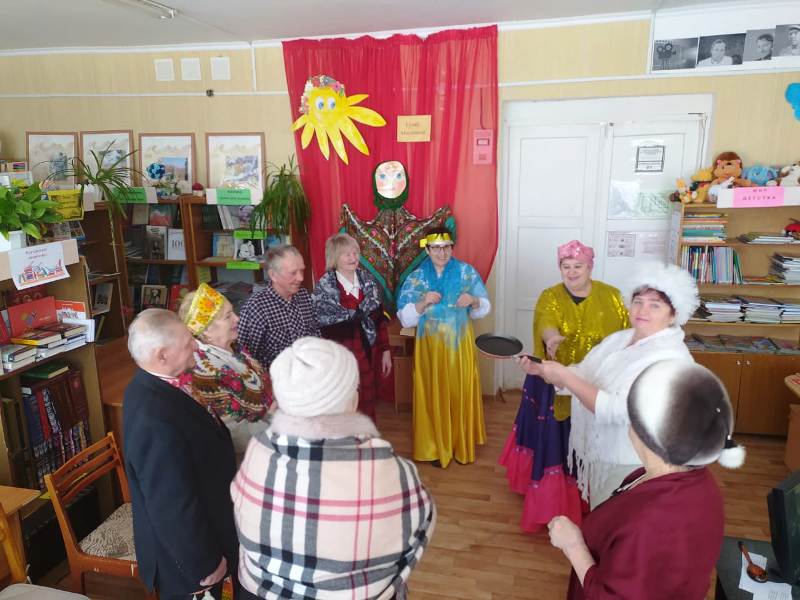 Библиотекарь Останина И. М. рассказала об истории праздника, перелистали страницы масляничного календаря, вспомнили пословицы и поговорки о Масленице. В гости на праздник пришла Зимушка-зима (Галкина Л. Н.), Весна-Красна (Нургалиева Ф. Ш) и Сударыня - Масленица (Сергеева Н. М.). Участники мероприятия активно участвовали в разгадывании загадок, играх, пели частушки, водили хоровод. Все участники праздника получили много положительных эмоций и ярких впечатлений от мероприятия.