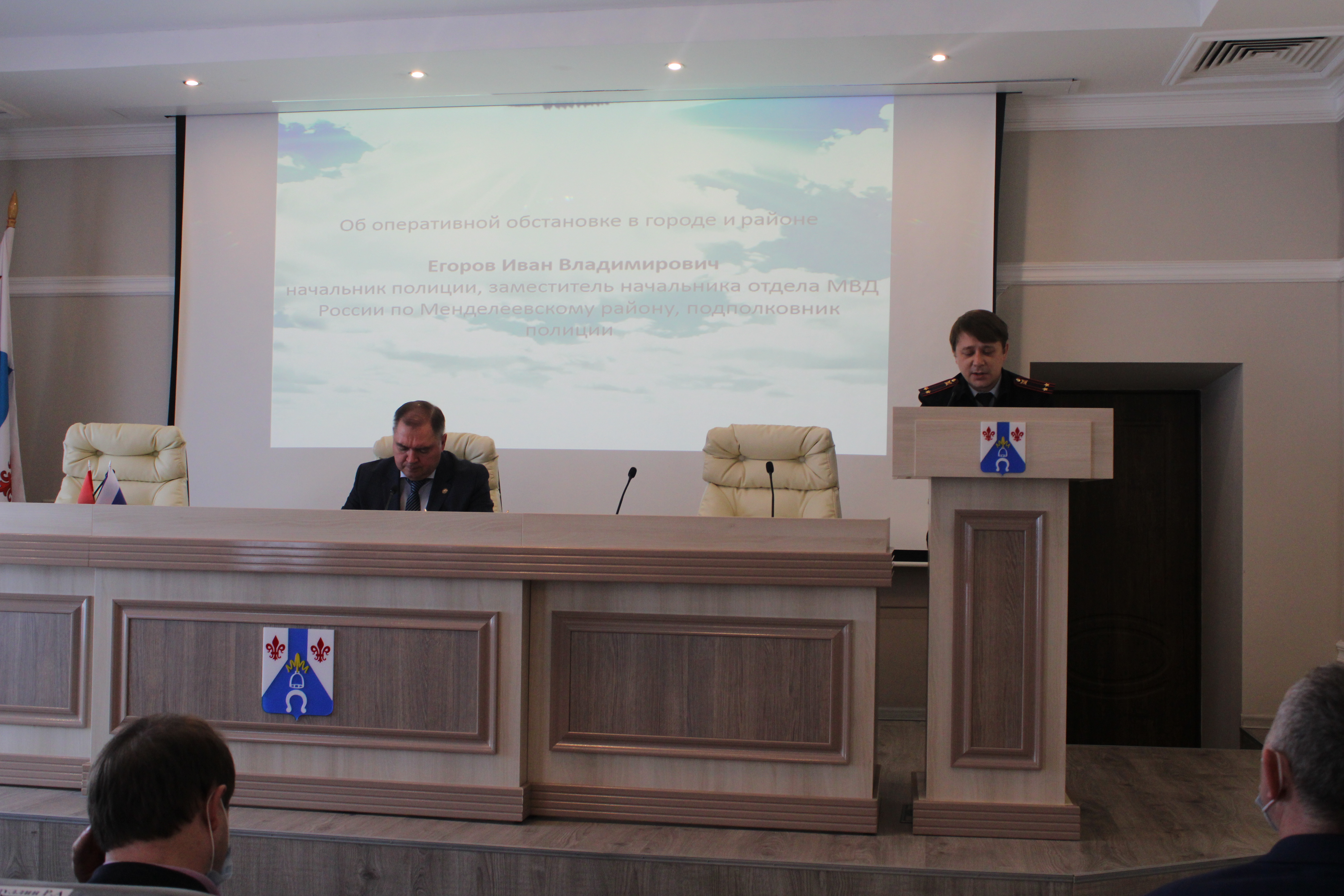Об оперативной обстановке в городе и районе доложил Иван Егоров – начальник отдела МВД России по Менделеевскому району, подполковник полиции. За неделю поступило поступило 106 сообщений, 8 из них носило уголовный характер. Также произошло 7 ДТП без пострадавших.