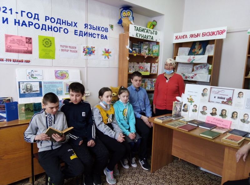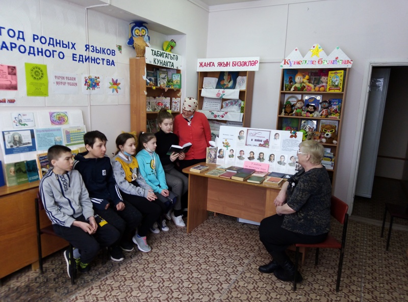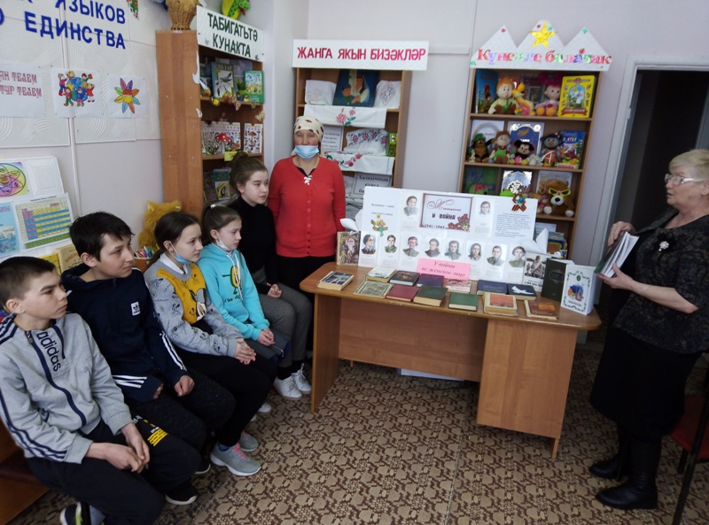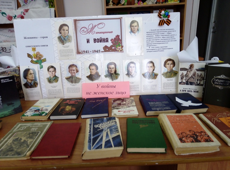 Для этого мероприятия был оформлена стенд «Женщина и Война», посвященный подвигам знаменитых летчиц. Организована книжная выставка «У войны не женское лицо». На выставке представлены книги о женщинах на войне и в тылу. Это повесть Б. Васильева «А зори здесь тихие», роман-дилогия Ш. Ракипова «Звездные ночи» и «О чем грустят кипарисы». Во время презентации выставки читали отрывки из романа «Девушки- звездочки» Ш.Ракипова, «Золотая звезда» Г.Абсалямова, «Повесть о Зое и Шуре» Л.Космодемьянской, «Честь» Г.Баширова. Мероприятие завершилось обзором литературы у книжной выставки.
