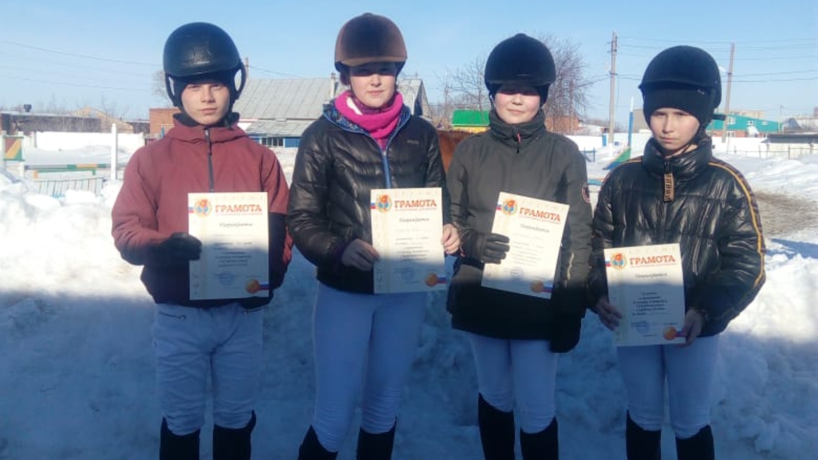 1 место заняла Дюжакина Арина на лошади Комета, второй стала Тарасова Лия на лошади Калифа, тройку замкнул Валиуллин Николай на лошади Алтын. Тренирует ребят Федорова А.Н.