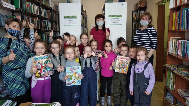 Библиотекарь познакомила детей с библиотекой, с интересными красивыми книгами. Малыши продемонстрировали свою находчивость в разгадывании загадок из сказочной шкатулки, отгадали книжных героев, с интересом посмотрели книги и журналы. Посмотрев мультфильм “Гришкины книжки” по произведению С. Маршака, сделали выводы почему нельзы так обращаться с книгой. Ралина Гайнуллина на татарском, Виктория Стахеева, Богачева Диана на удмуртском, Милена Зажогина, Майя и Таисия Филипповы на русском языках рассказали стихотворения.