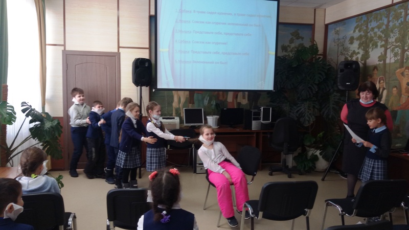 В различных конкурсах: "Актерское мастерство", "Театральная ромашка", "Скороговорки", «Звериный хор», «Пантомима» - ребята проговаривали скороговорки, показывали пантомимы и небольшие миниатюры. После каждого задания зрители выбирали самого лучшего актера, которому вручали жетон за победу. В завершение всех заданий актеры - победители сыграли мини спектакль «Репка». Школьники проявили творческие способности и великолепно справились с ролями. А зрители аплодисментами поблагодарили артистов. Получилось очень весело и познавательно, встреча подарила всем ребятам много положительных эмоций.