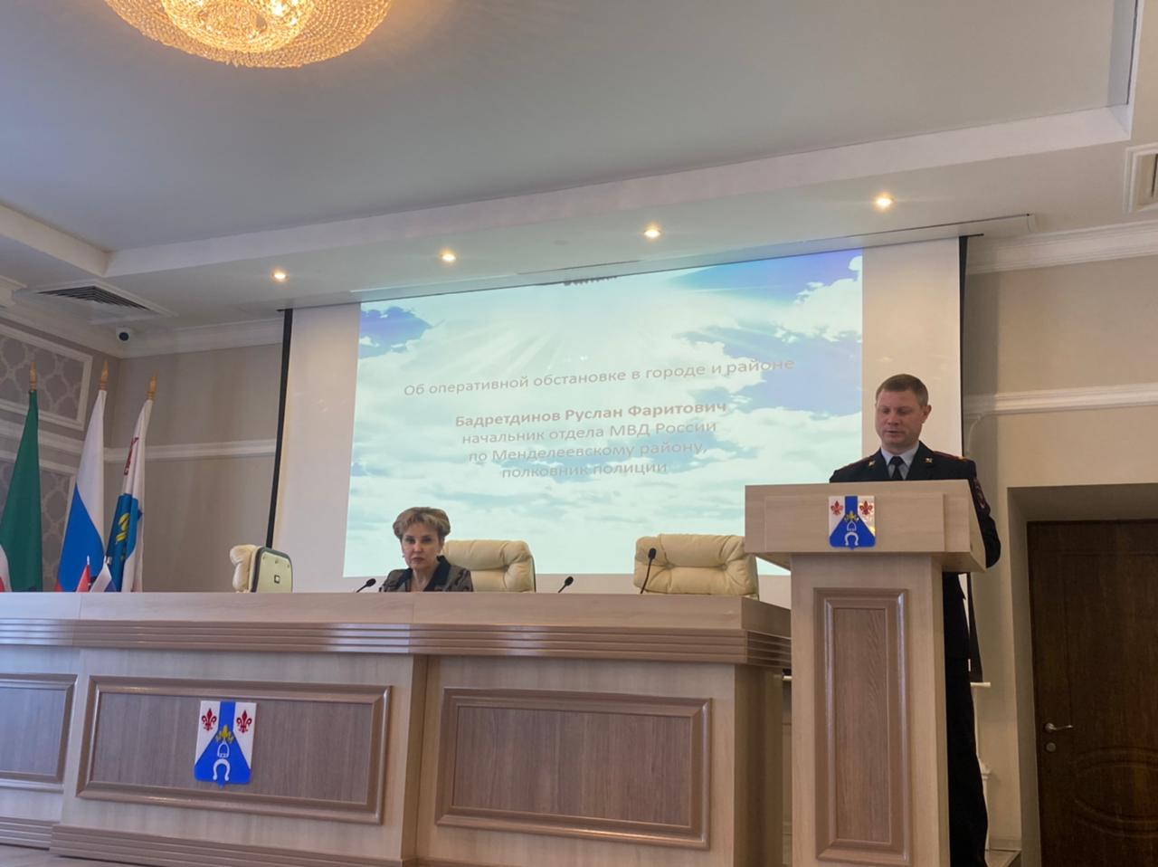 Об оперативной обстановке в городе и районе доложил Руслан Бадретдинов – начальник отдела МВД России по Менделеевскому району, полковник полиции.