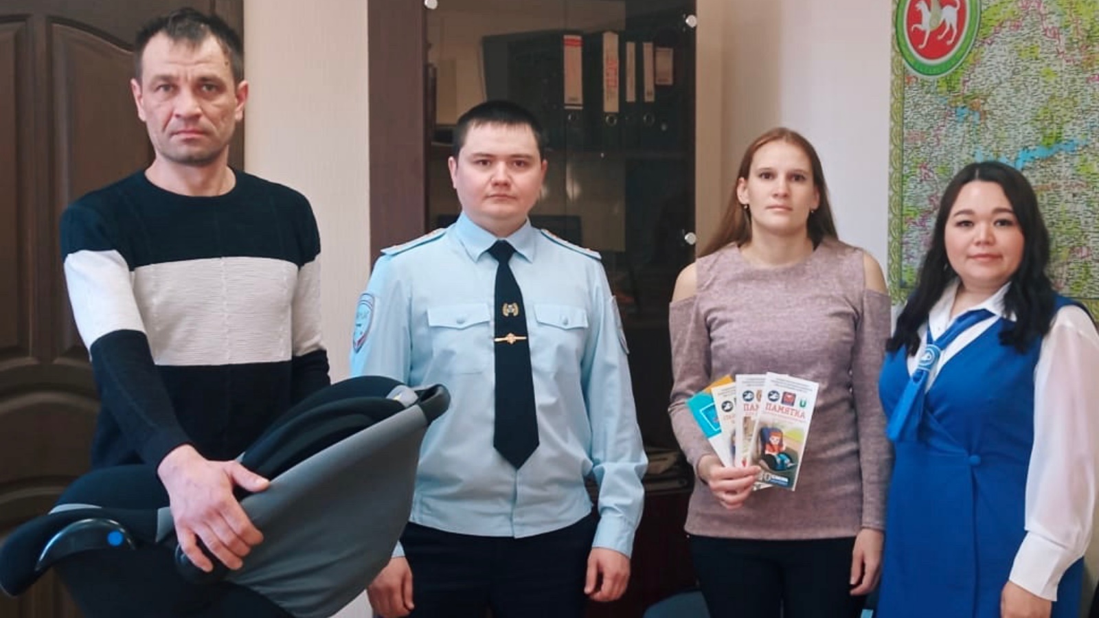 В последний день оперативно-профилактического мероприятия «Весенние каникулы» начальник ОГИБДД отдела МВД России по Менделеевскому району Харисов Р.М. совместно с начальником отдела профилактики ГБУ «БДД» Менделеевского района Халикуловой М.И. вручили многодетной семье детское удерживающее устройство (автолюлька), для безопасной перевозки ребенка в автомобиле.