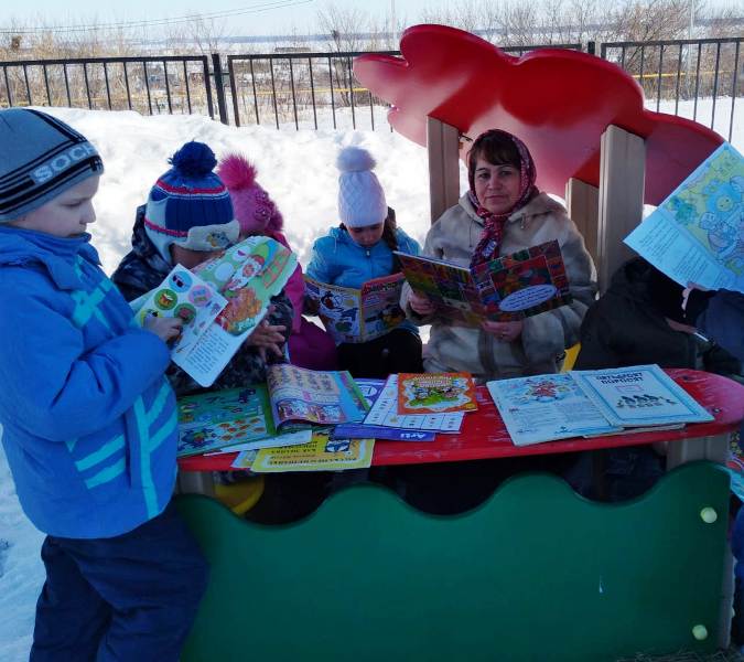 В начале игры, которую проводила библиотекарь Данилова Е.И. состоялся разговор о весне. Все желающие могли принять участие в литературных играх, викторинах и конкурсах на свежем воздухе. Для детей была организована игра с мячом и т.д. На площадке разместились книжки и журналы. Дети с большим интересом слушали сказки. Игра прошла весело, все участники получили сладкие призы.