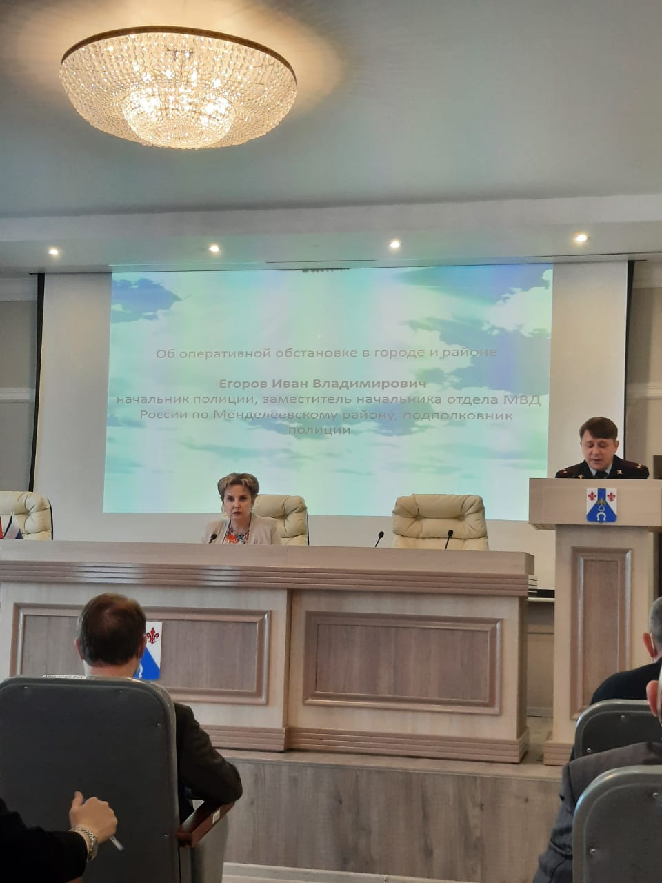 Информацию об оперативной обстановке в городе и районе доложил Иван Егоров – начальник полиции, заместитель начальника отдела МВД России по Менделеевскому району, подполковник полиции.
