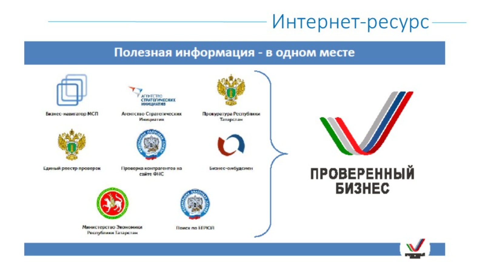 В целях оперативного информирования бизнеса о действующих требованиях законодательства функционирует интернет-ресурс «Проверенный бизнес» (provbiz.ru). Данный ресурс создан в 2017 году по инициативе Министерства экономики Республики Татарстан и Прокуратуры Республики Татарстан.