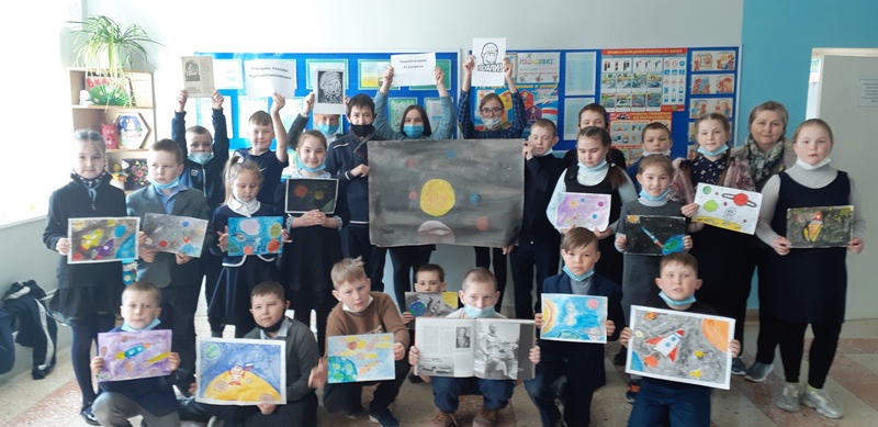 Енабердинская с/б совместно со школой провели конкурс рисунков и флешмоб "Я Гагарин".