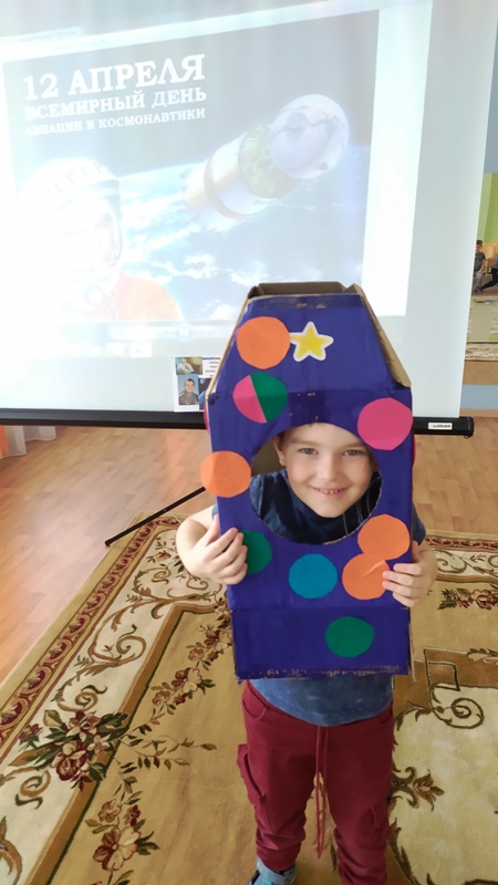 12 апреля – Всемирный день авиации и Космонавтики. Прошло 60 лет с того дня, когда впервые в мировой истории человек совершил полёт в космос. Этот день ознаменовал новый этап в развитии всей науки и техники. Мы помним эту дату и гордимся, что именно наш, русский человек, впервые покорил космос. И этот день в Ижевском д\с «Солнышко» провели необычно. Для дети старшей и подготовительной групп библиотекарь И.М. Останина совместно с воспитателями провели игру-путешествие «Если очень захотеть, можно в космос полететь».