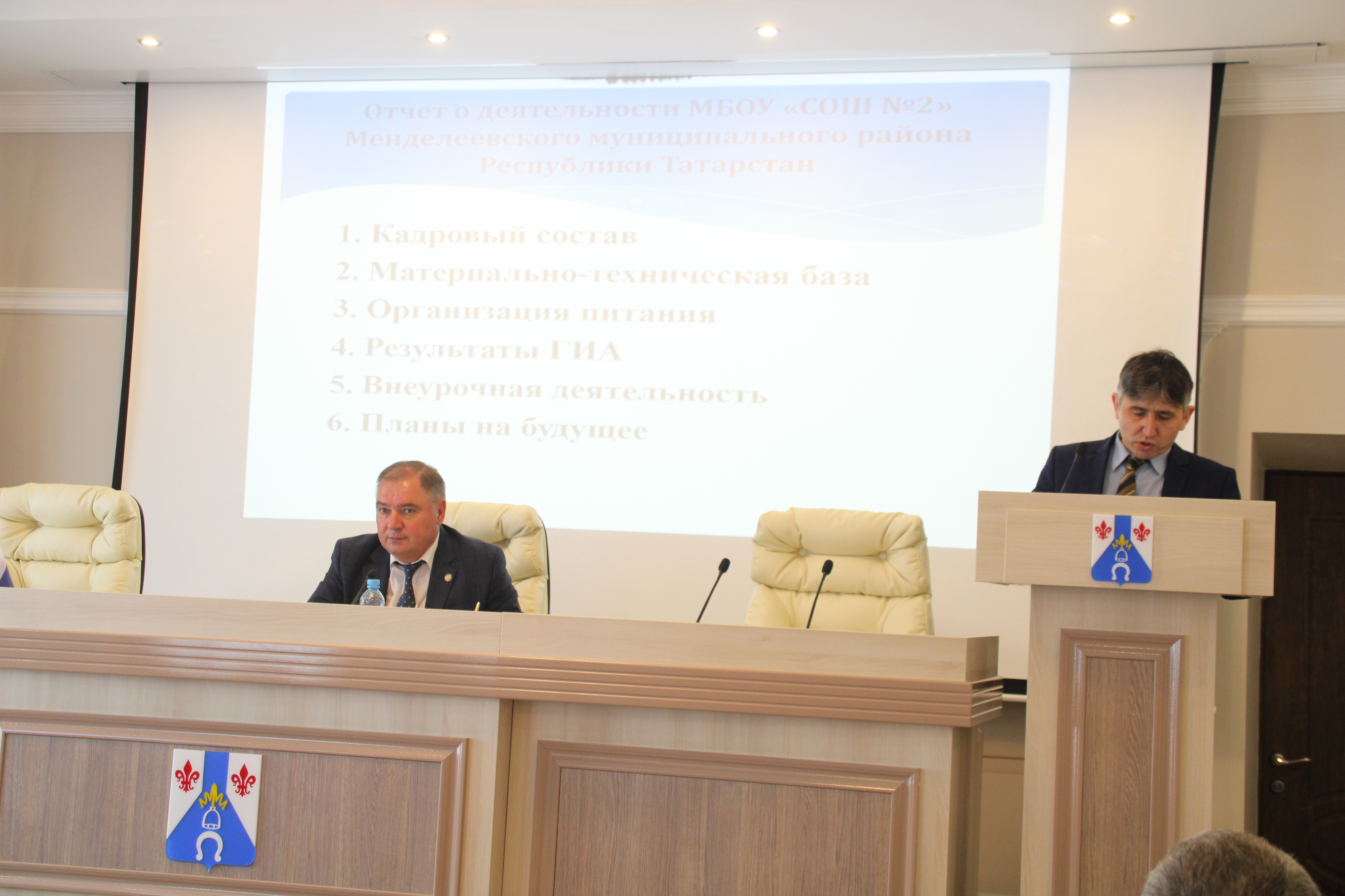 С итогами работы средней общеобразовательной школы №2 Менделеевского муниципального района за 2019-2020 учебный год выступил Михаил Яковлев – директор муниципального бюджетного общеобразовательного учреждения "Средняя общеобразовательная школа №2» Менделеевского муниципального района. Он рассказал о кадровом составе школы, материально-технической базе, организации питания и занятий детей во внеурочное время.