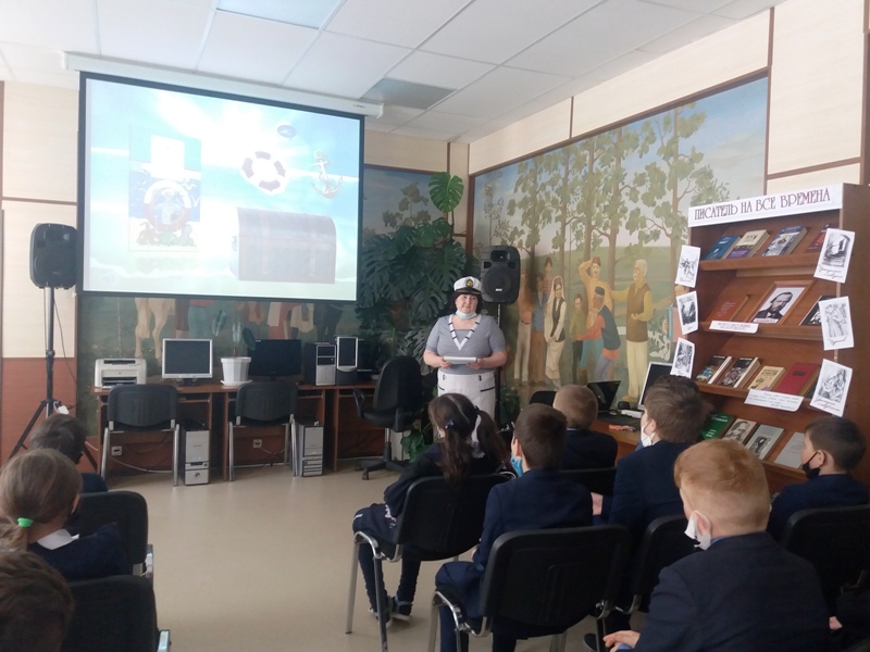 Учащиеся 4 «А» и 3 «Б» классов школы №1 (учителя Захарова В.Ф., Иванова Т.А.) отправились в библиокруиз под названием «Весёлые мореплавания Виталия Коржикова».