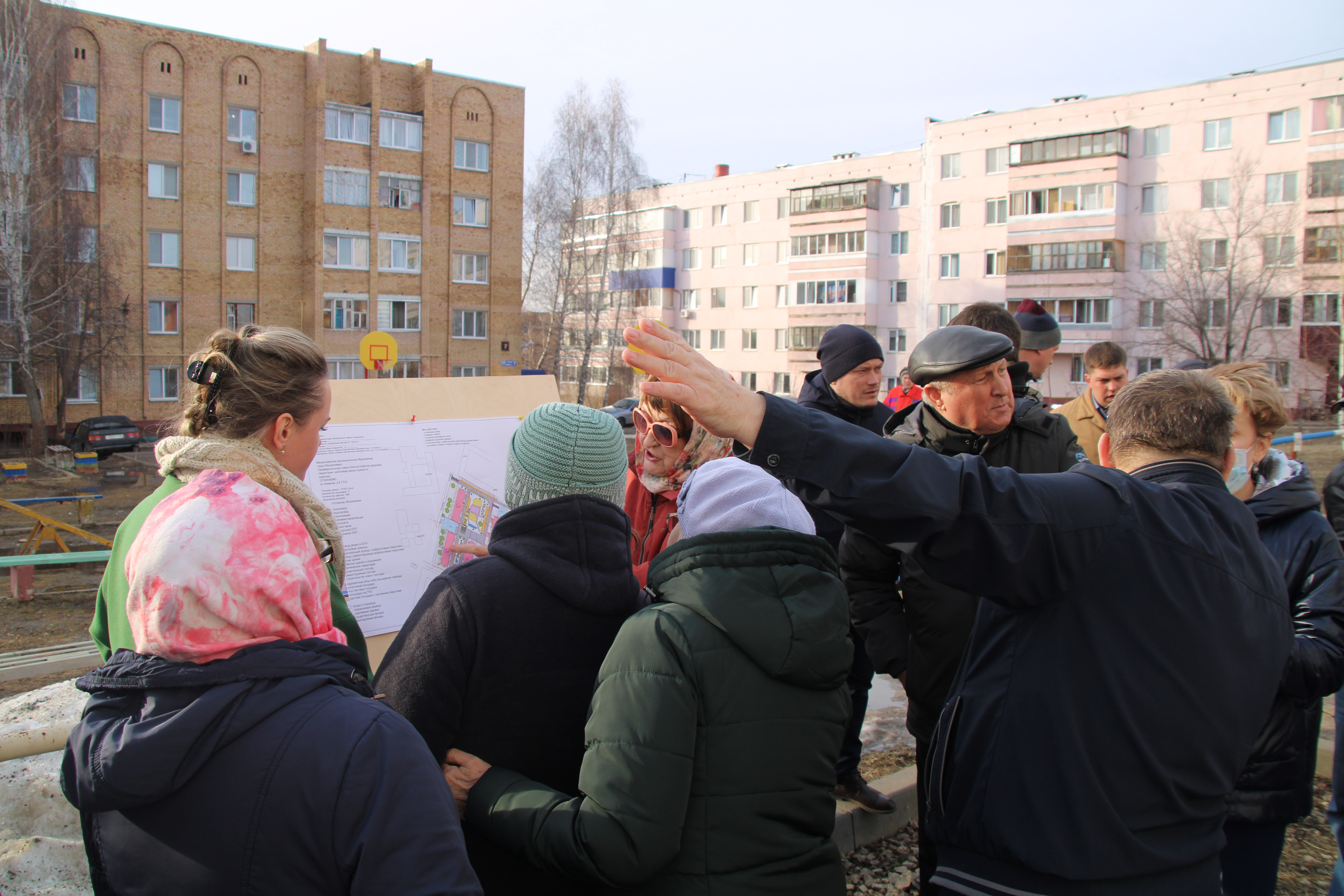 12 апреля заместитель Главы района Лейсан Галеева встретилась с жильцами домов по адресу: ул.Химиков 6 - 9 с целью обсуждения схемы проекта дворовой территории в рамках реализации проекта "Наш двор".