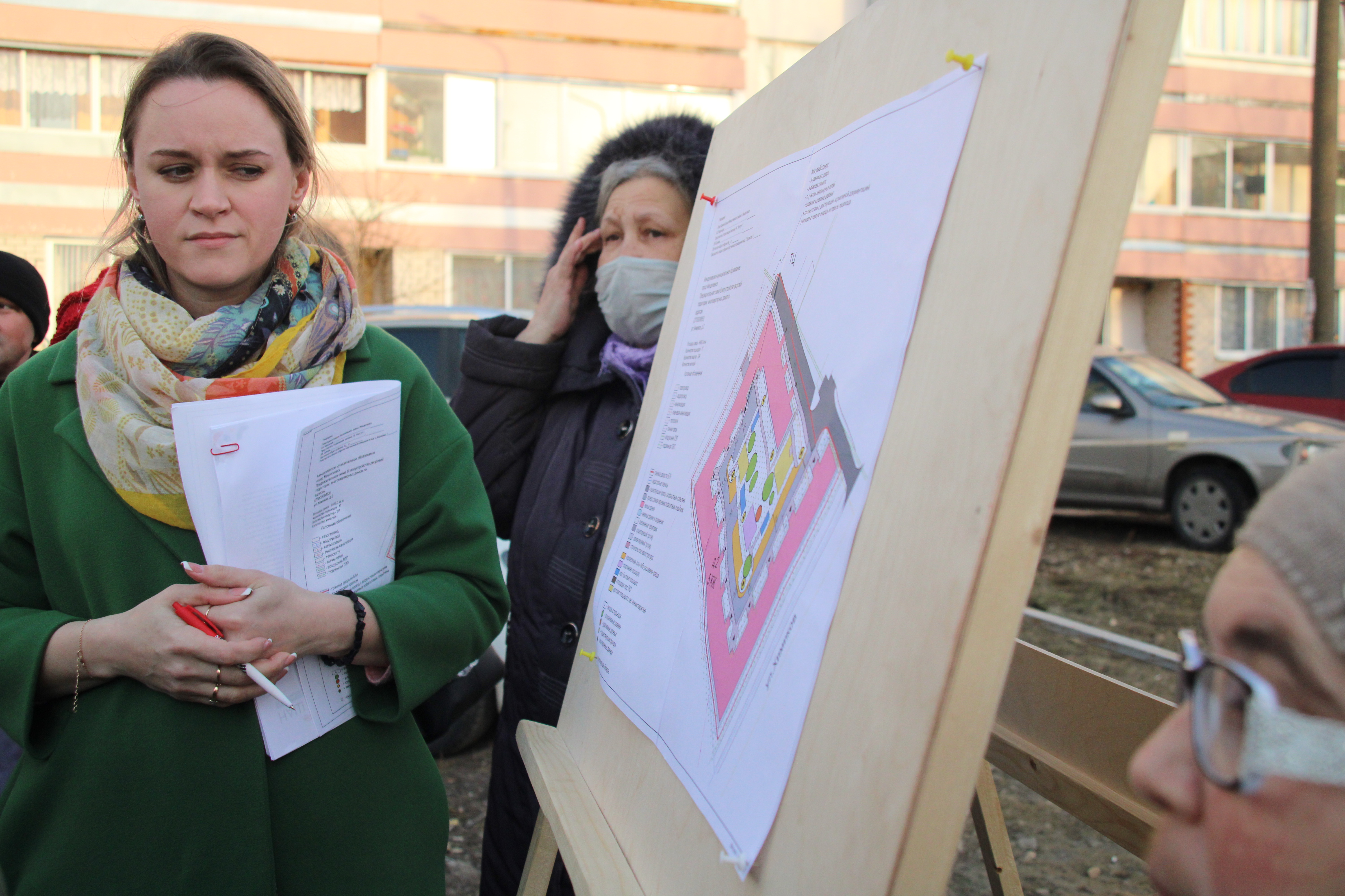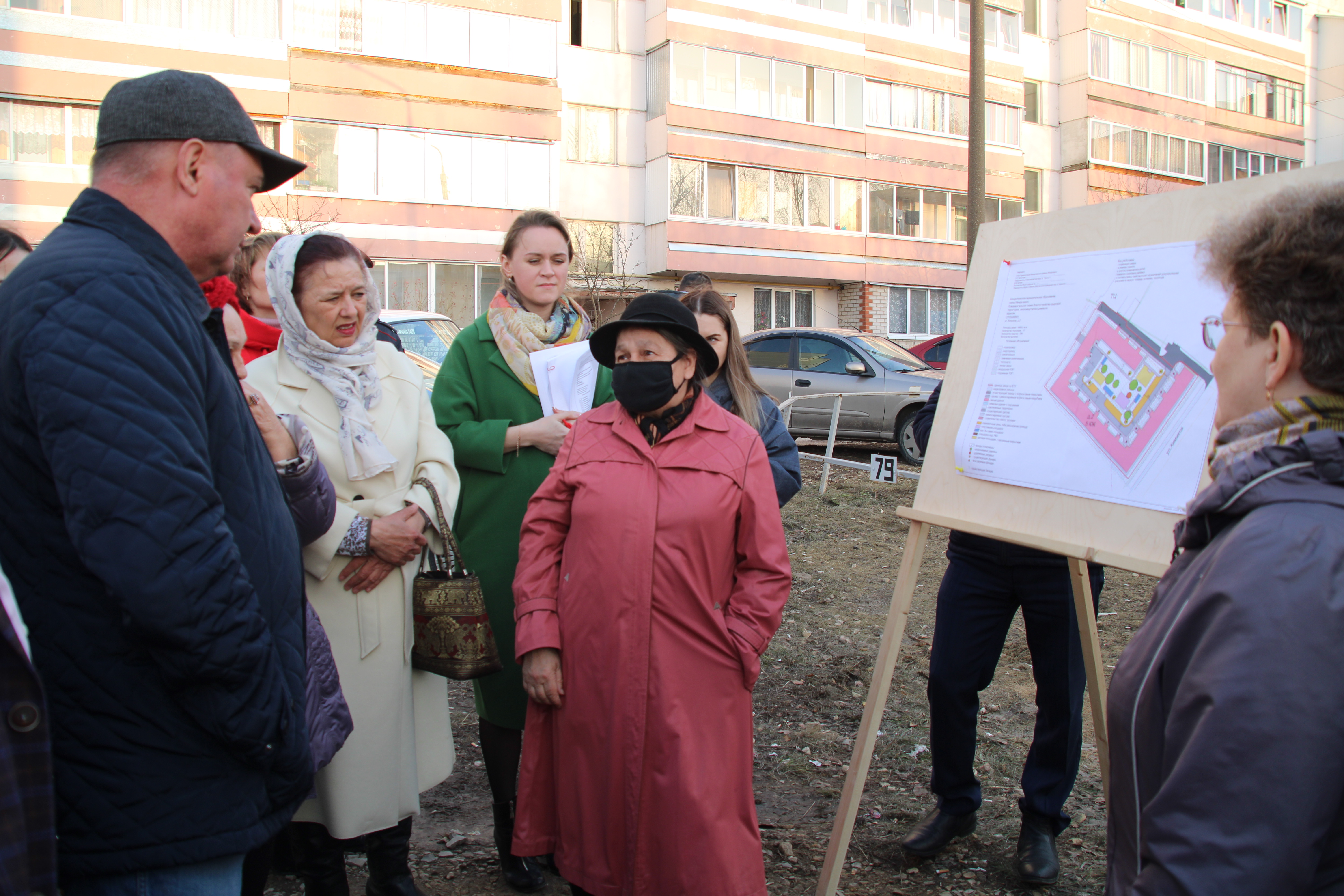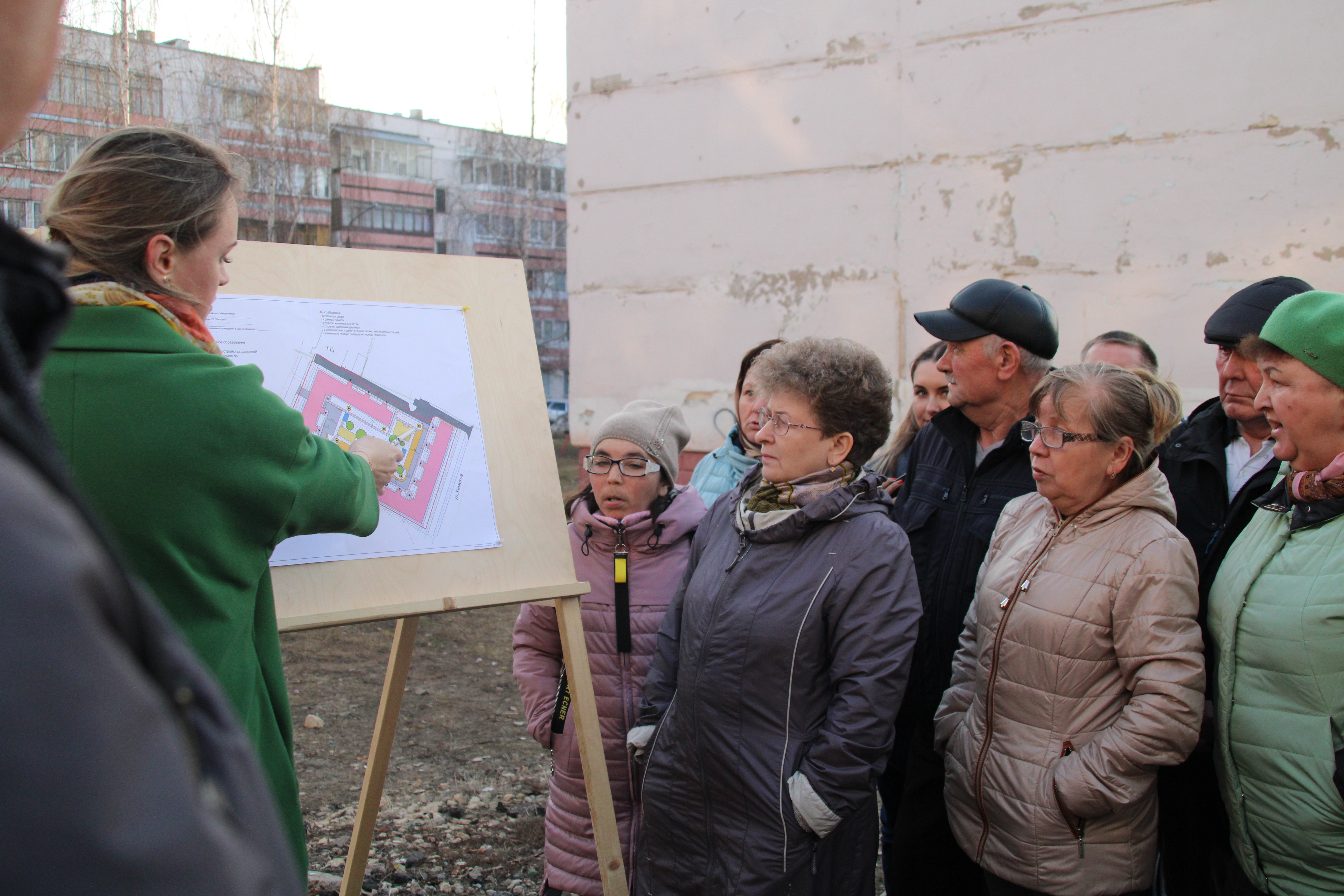 Именно схема благоустройства дворовой территории по программе "Наш двор" обсуждалась 13 апреля на встрече Главы района Валерия Чершинцева и обслуживающих организаций с жителями дома
