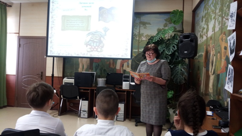 Библиотекарь Сырышева Т.Н. рассказала о том, что каждому духу отведено своё особое место, где он является полноправным хозяином. Так в лесу властвовал леший, на болоте кикимора болотная, в реках и озёрах проживал водяной со свитой русалок, которые служили ему. А в доме обитал домовой, да и все дворовые постройки были заняты определёнными жильцами. Наши предки рассказывали про встречи с ними, описывали их внешность и повадки, знали, как можно задобрить или обмануть их, избежать неприятностей со стороны духов. Ребята посмотрели мультфильмы, видеоролики и послушали про некоторых духов сказки, которые были зачитаны из книги «Герои русских сказаний». Эта книга рассказывает о призраках, духах, фантастических обитателях лесов, болот, рек, полей, сельских дворов и изб, богатырях - персонажах старинных народных поверий, легенд, преданий, сказок, былин.