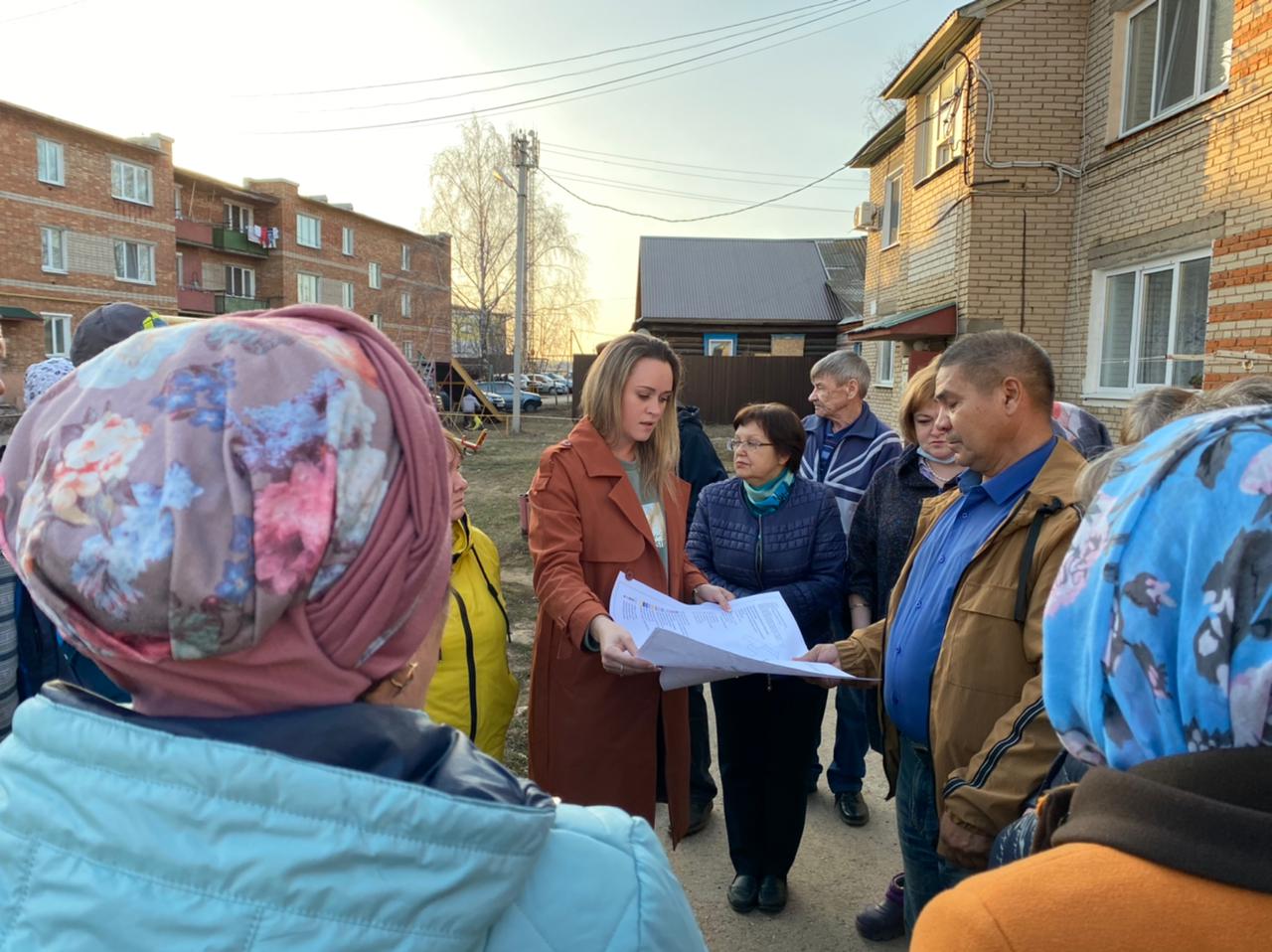 15 апреля во дворе по ул.Дружбы, 6, 8, 10 жильцы домов встретились со строителями, архитектором и другими обслуживающими организациями по вопросу благоустройства дворовой территории в рамках президентской программы "Наш двор".