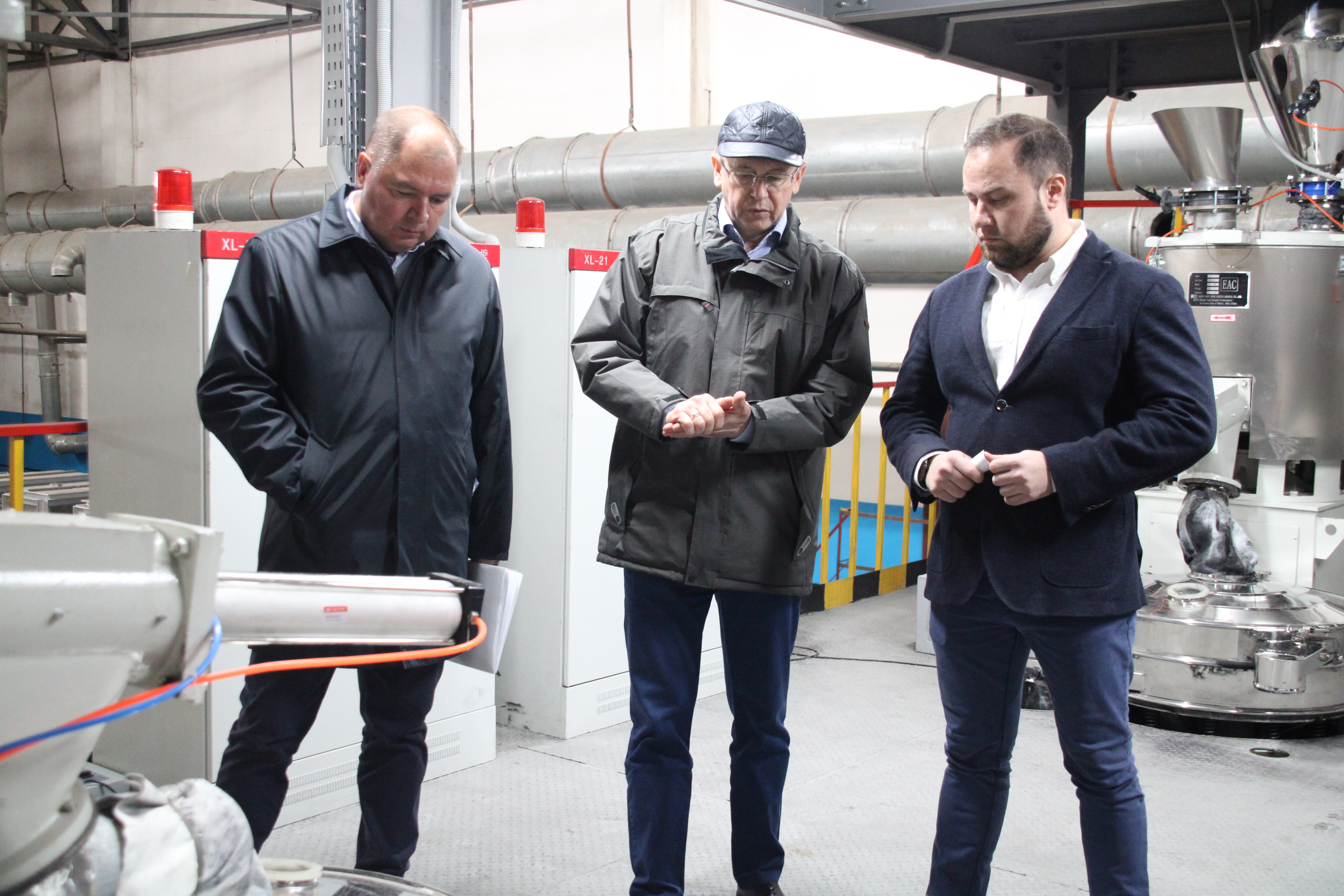 Делегация вместе с Главой района Валерием Чершинцевым проехали в ООО "Концерн Карпов", где производятся тонеры. Предприятие является резидентом ТОСЭР. Директор Дамир Шамсин провел экскурсию по производственной площадке, где рассказал о сырье, использующемся при производстве тонеров, о самой системе производства, продемонстрировал имеющиеся оборудования и технологии.