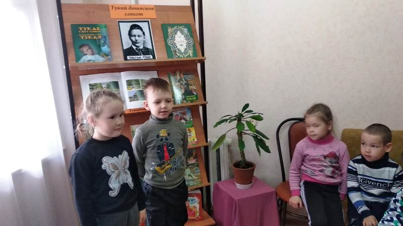 Библиотекарь Хафизова Г.Р. ознакомила детей с библиотекой, с выставками. Дети услышали о жизни и творчестве, детстве поэта, посмотрели мультфильм “Кошка озорница”, по произведению Г.Тукая. Прозвучали стихи на татарском и русском языках. Галиахметов Артур и Миронова Аделина прочитали стихотворения “Четыре времени года”, Зырянова Карина и Ахметзянов Риналь - “Ребенок и бабочка”, Курятникова Злата - “Птицам”, Комарова Мирослава - “Сон Земли”, Хаматов Самир - “Наша семья”. Ребятам очень понравилось в библиотеке, они выразили желание посетить ее еще.