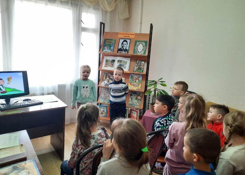В Татарской библиотеке ребята из детского сада №12“Крепыш” приняли участие в литературном часе “Путешествие в мир Тукая” (воспитатели: Струкова А. Р., Красильникова А. Ю).