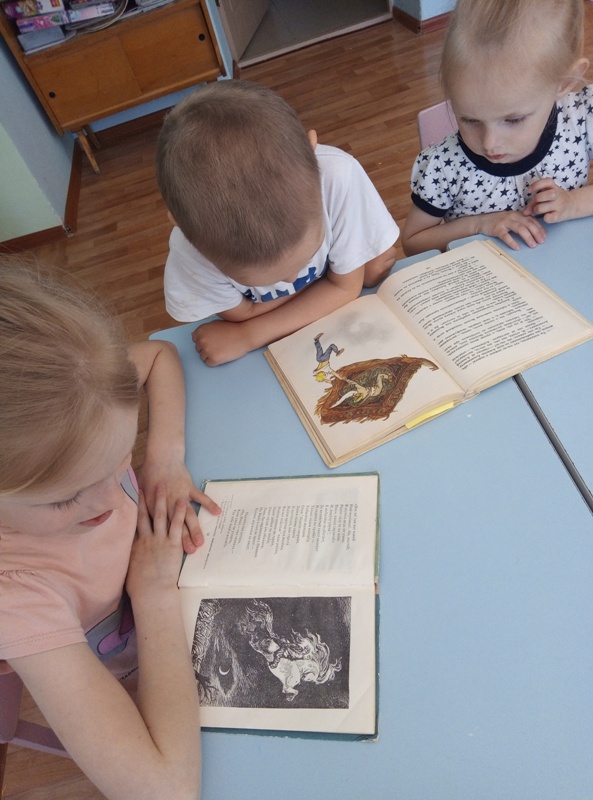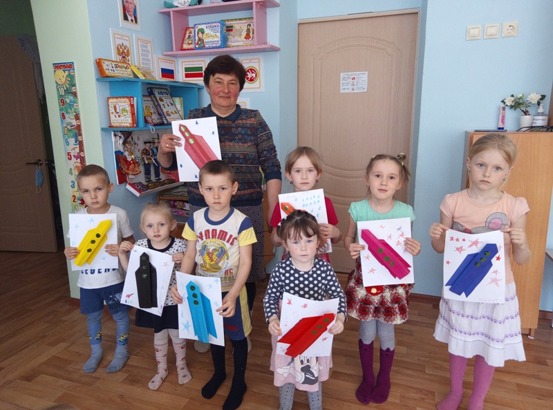 Игра началась с опроса детей: каких они знают сказочных героев, умеющих летать и их летательные аппараты. Для облегчения детям были предложены книги: П.Ершов «Конек-горбунок», Л.Лагин «Ковер-самолет», «Старик Хоттабыч», «Русские народные сказки». Какие еще летательные аппараты придумали люди. На втором этапе разгадывали загадки про космос, прослушали стихотворение «В космосе так здорово», прошли станцию «космическая мастерская» по изготовлению ракет и закончили игру физкультминуткой «космодром».