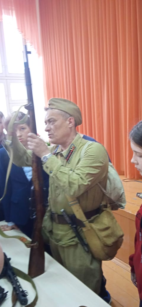 24 апреля в МБОУ «СОШ №1 имени Героя Советского Союза М.С.Фомина» в рамках национального проекта "Образование" пошла встреча с военно-патриотическим клубом «Наследие» (г. Нижнекамск). Руководитель клуба А. Сабакаев рассказал ребятам о деятельности клуба и поисковом движении. Участники Движения ведут поисковые работы во всех уголках страны, которые затронула Великая Отечественная война. Активисты Движения не только каждое лето выезжают на поля сражений, но и работают в архивах, помогают родственникам узнать о судьбе своих близких, ухаживают за воинскими захоронениями, составляют Книги Памяти, занимаются патриотическим воспитанием, реализуют просветительские проекты, проводят выставки по итогам поисковых работ. Ребята не только узнали много интересного о поисковом движении, но и увидели вещи, привезенные с мест боев. Также учащиеся познакомились с оружием времен Великой Отечественной войны.