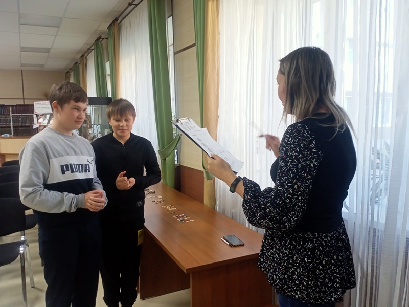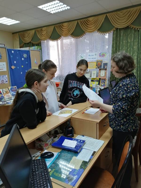 Сотрудники Детской библиотеки пригласили учащихся 7 «В» класса СОШ № 1 на квест «В поисках науки» (кл, руководитель Гайнетдинова Г.А.).