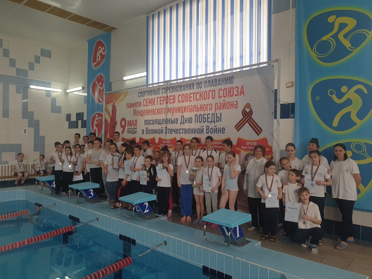 4 мая 2021 года в Оздоровительном Комплексе «Нептун» состоялось Открытое Первенство Менделеевского муниципального района по плаванию, посвященное Дню Победы и памяти Семи Героев Советского Союза.