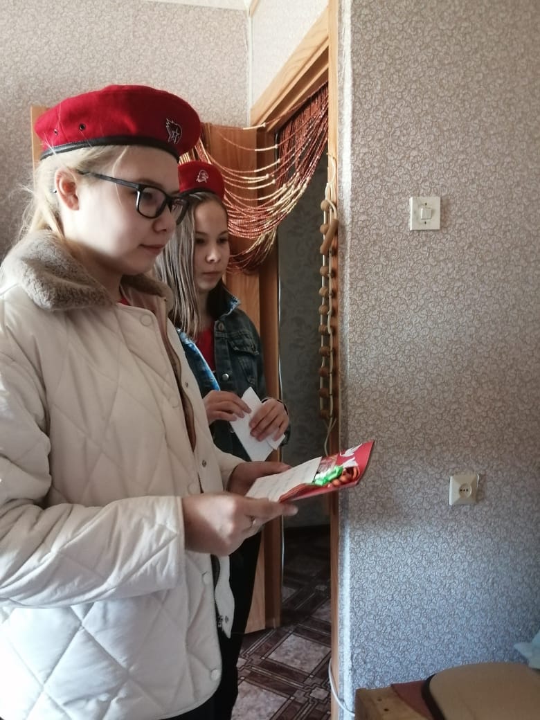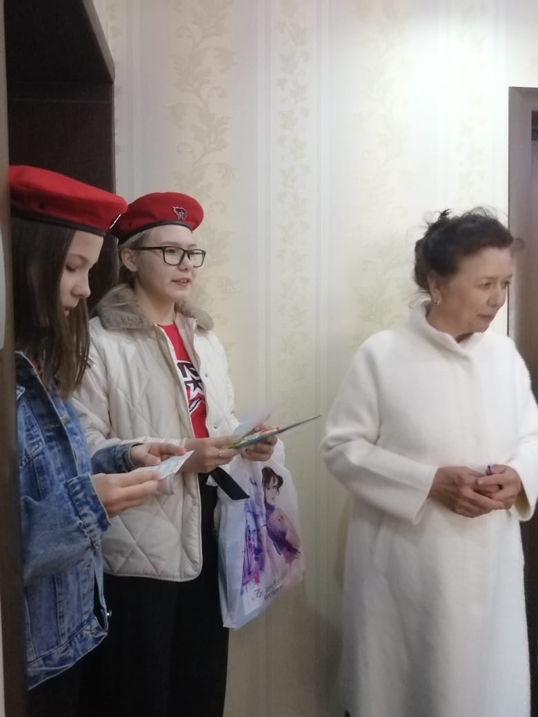 Председатель ТОС "Химик" совместно с юнармейцами 3 школы поздравили тружеников тыла и детей войны