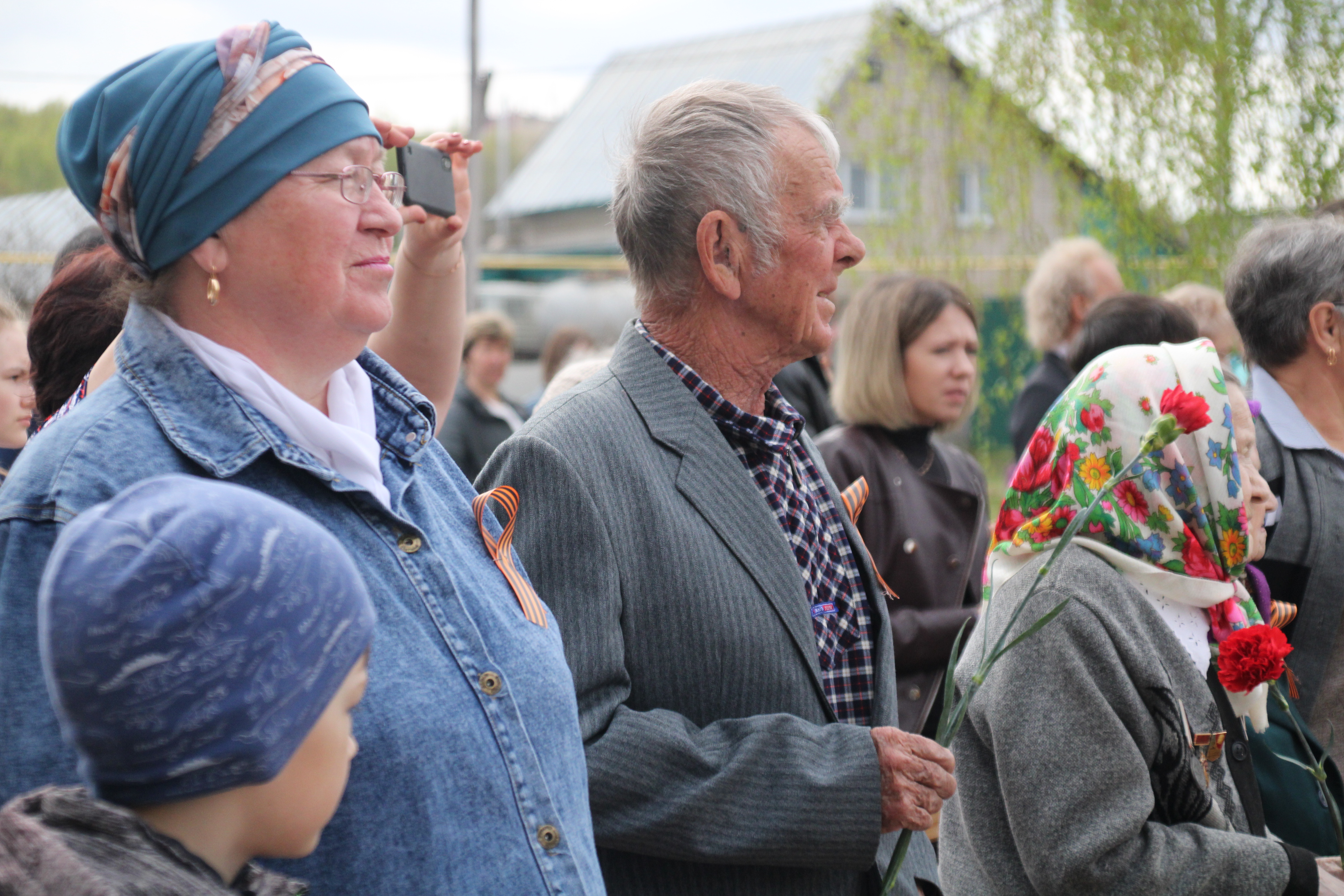 Перед зрителями выступили отряд юнармейцев, учащиеся средней Ижевской школы. Также к поздравлениям присоединились глава Ижевского поселения Нина Сергеева, председатель Совета ветеранов Любовь Сорокина, директор санатория "Шифалы су - Ижминводы" Салим Хабибуллин.