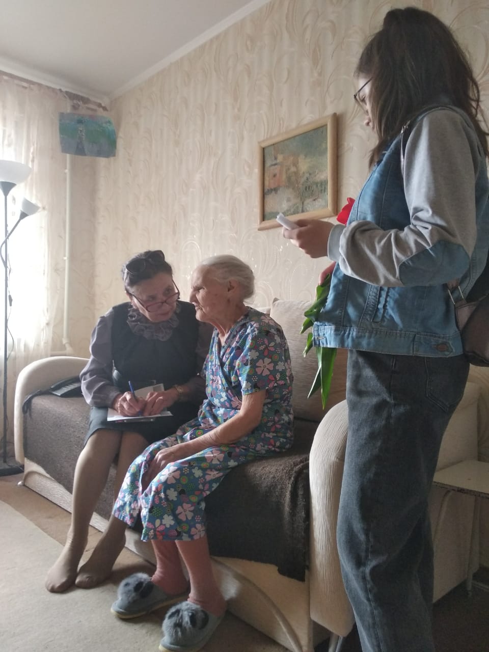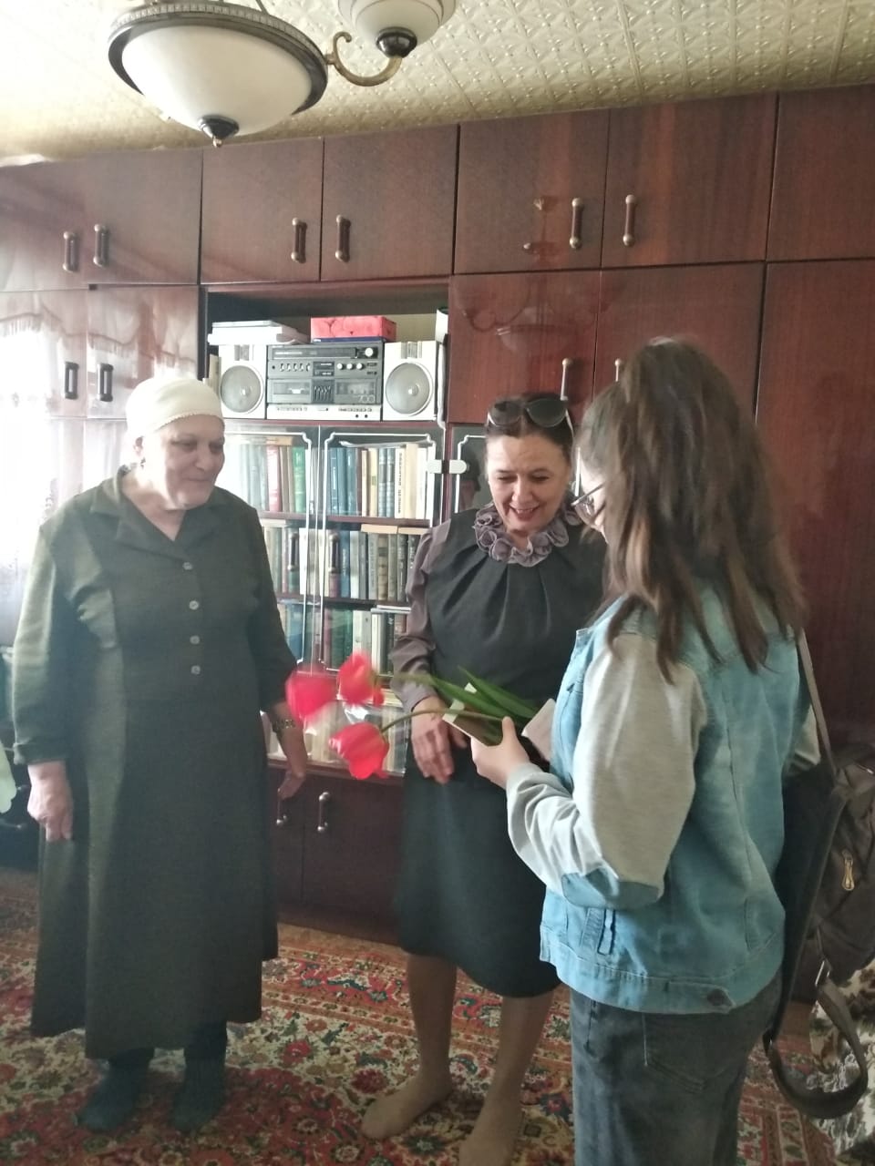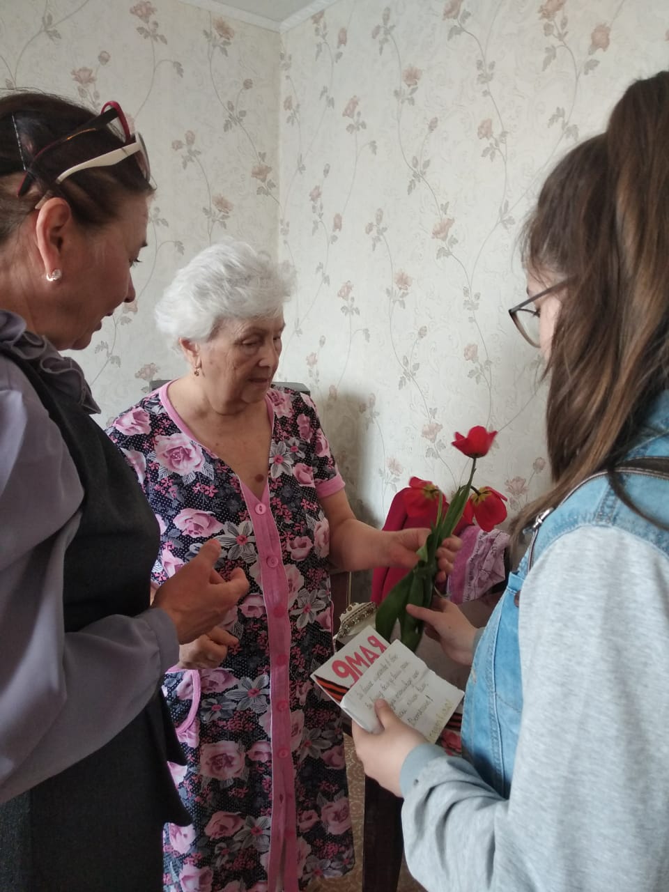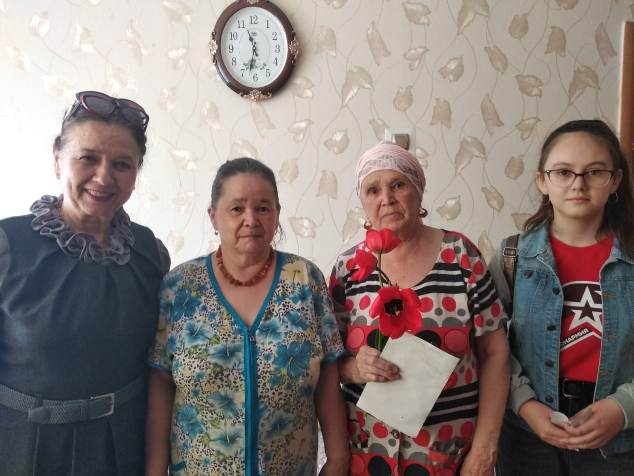 Председатель ТОС Альфия Талыпова совместно с юнармейцами продолжили поздравлять тружеников тыла и детей войны 3-а микрорайона, вручая цветы и открытки, сделанные собственными руками. Также они собирали сведения по подготовленным анкетам.