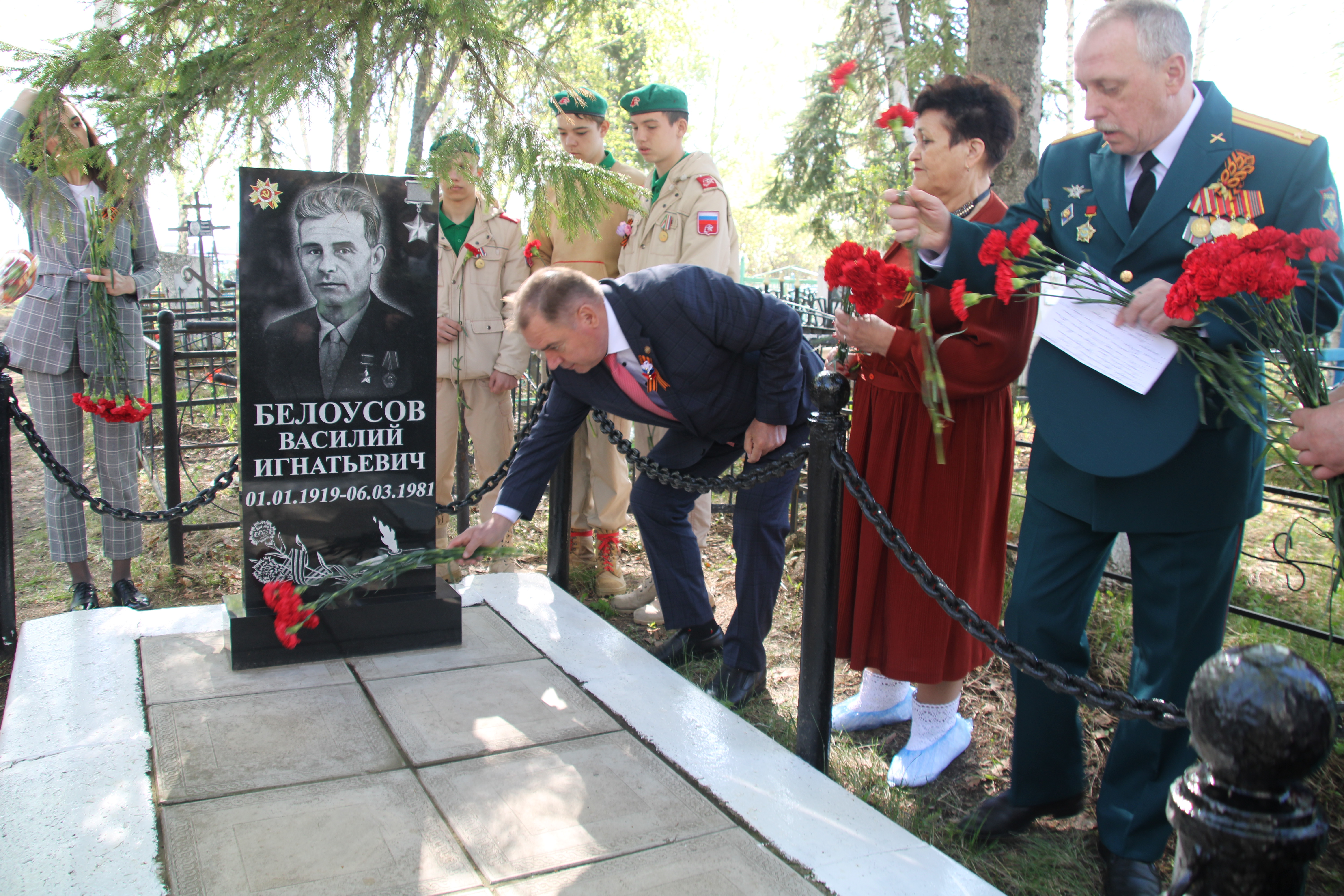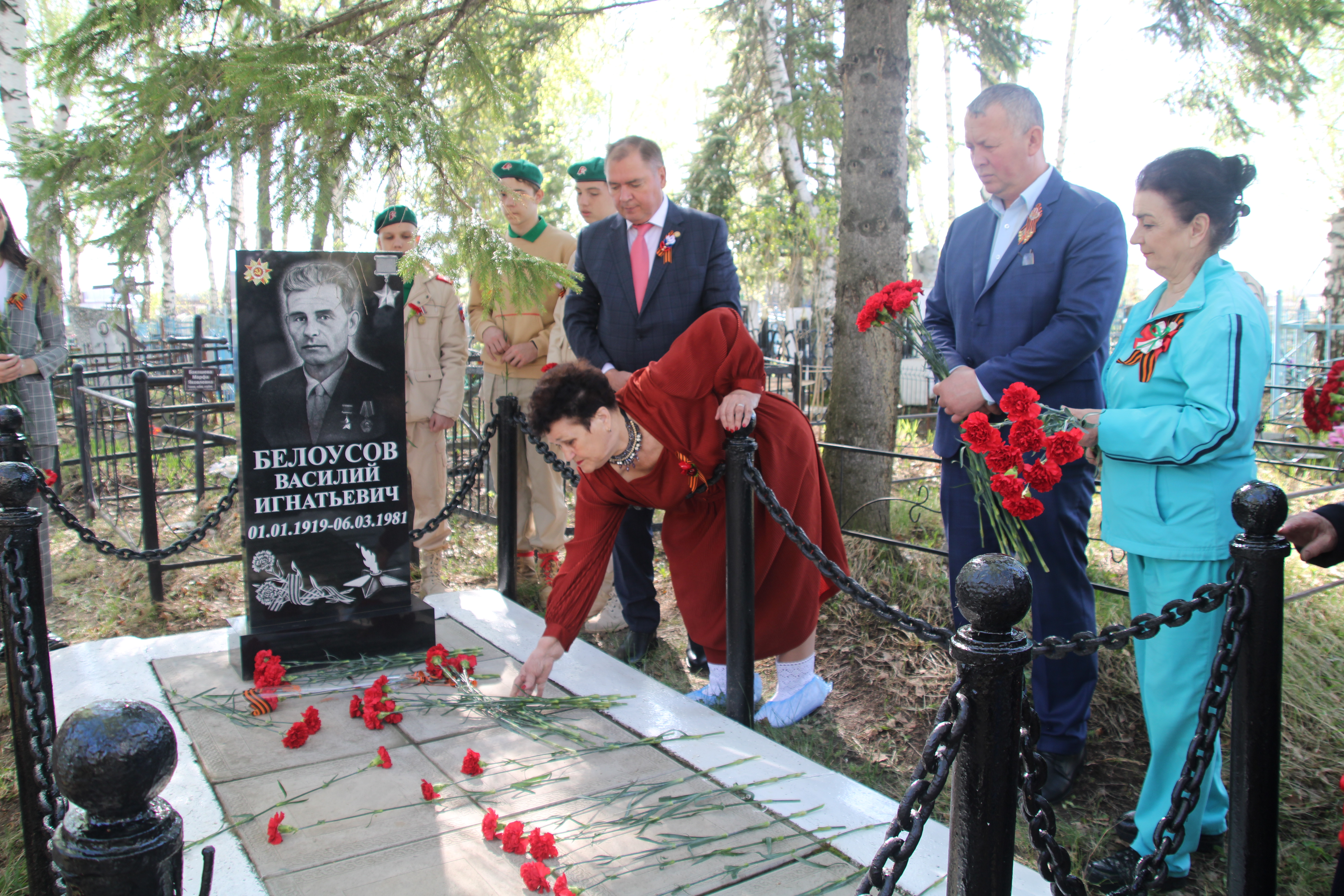 Собравшиеся посетили могилы Василия Игнатьевича Белоусова, Павла Григорьевича Фролова, Сергея Петровича Агафонова и Суднишниковой Тамары Владимировны - сестры Героя Советского союза Суднишникова Михаила Владимировича.