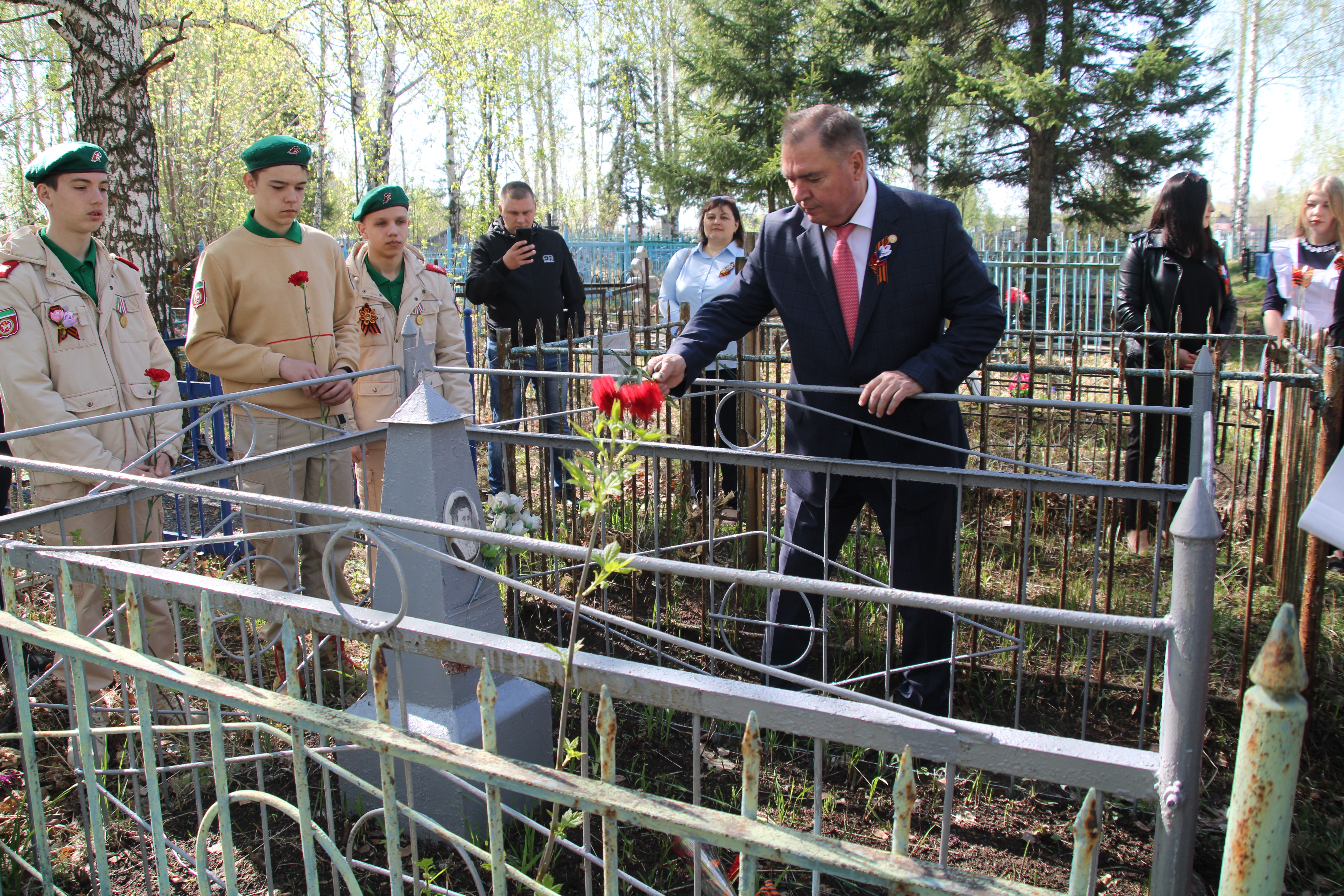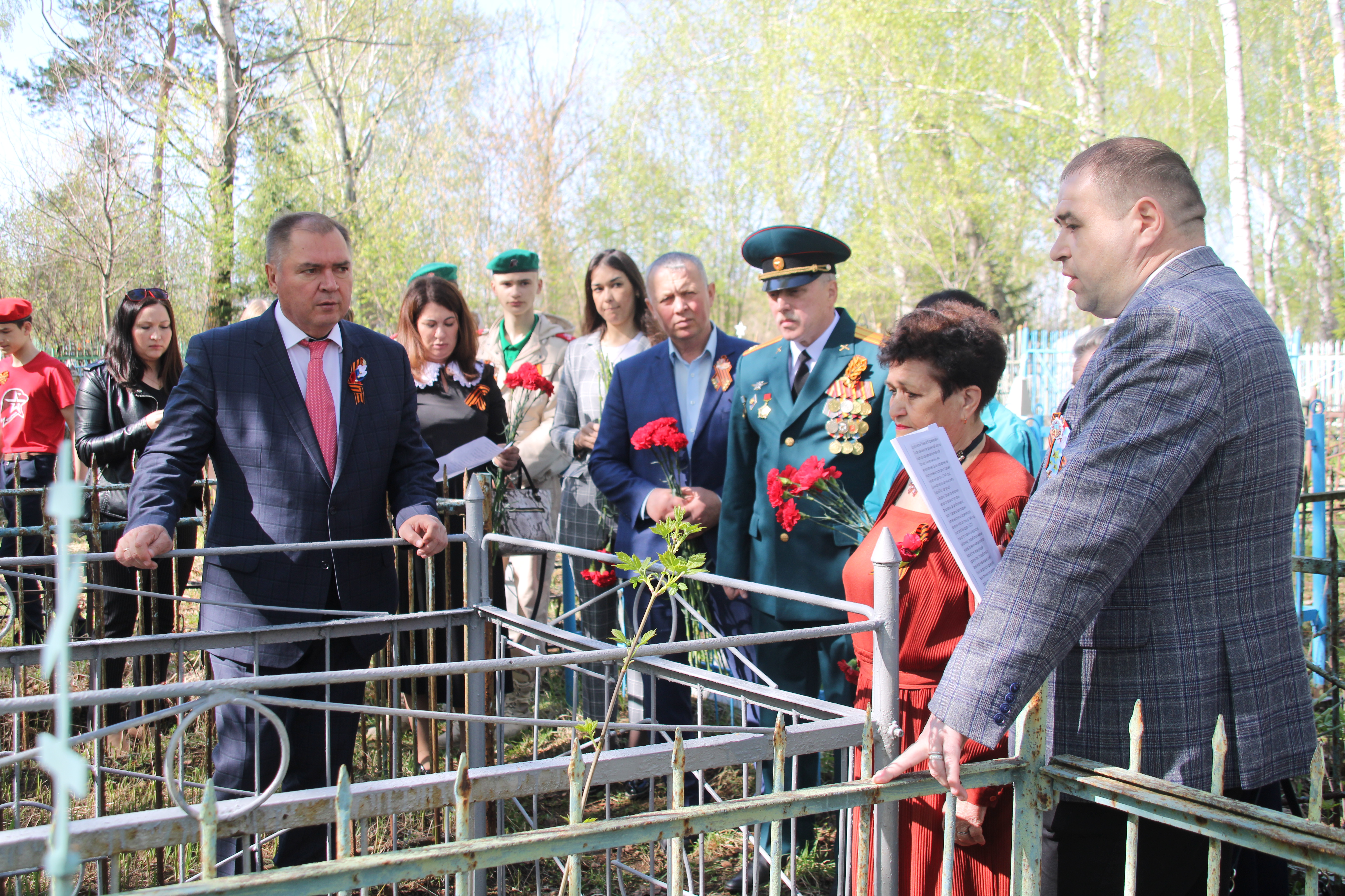 Сегодня, в день празднования Великой Победы, Глава района Валерий Чершинцев совместно с председателем Совета ветеранов Любовь Сорокиной и военным комиссаром Сергеем Залуженко возложили цветы на могилы Героев Советского союза, красноармейца и ребенка войны.