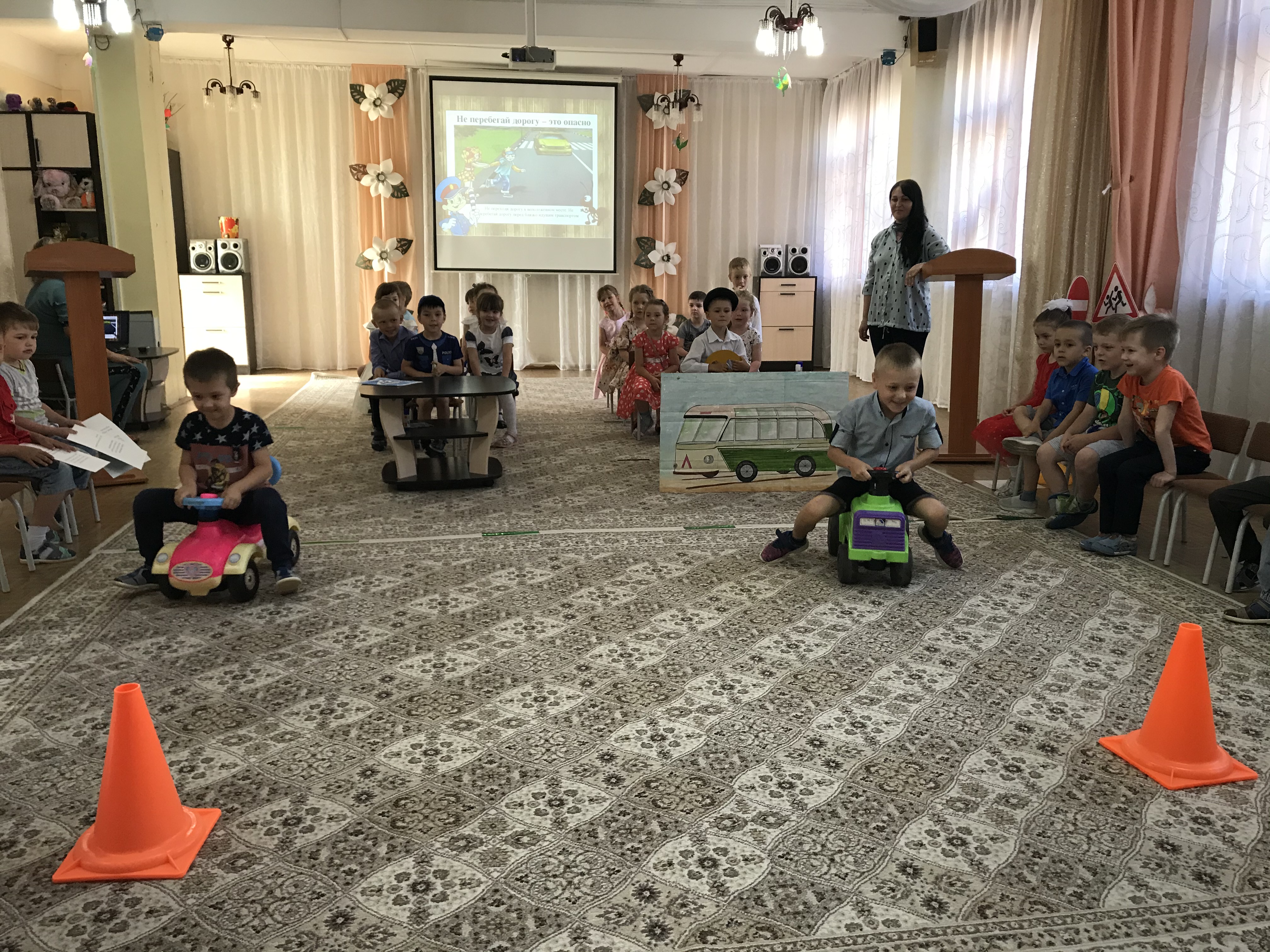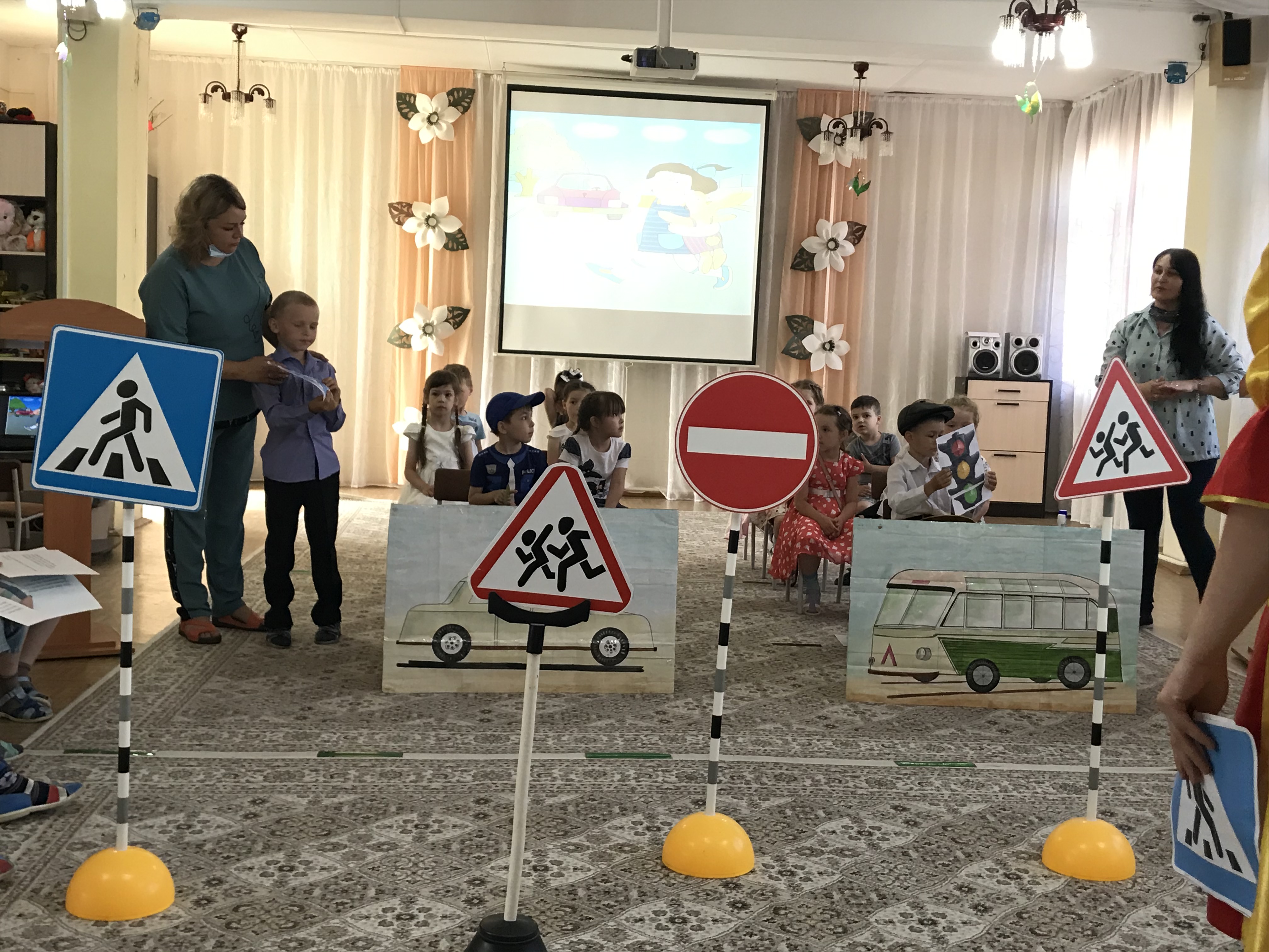 Воспитатели детского сада Кузнецова Наталья Леонидовна и Шамсутдинова Айгуль Файзулхановна подготовили для ребят интересные вопросы и задания, с которыми они справлялись отлично. В процессе мероприятия ребята не только отвечали на вопросы, но и рассказывали о дорожных знаках, о правилах поведения в транспорте, о том что приведет если водитель не будет соблюдать скорость. Говорили о самых важных правилах для того чтобы уберечь их жизнь.