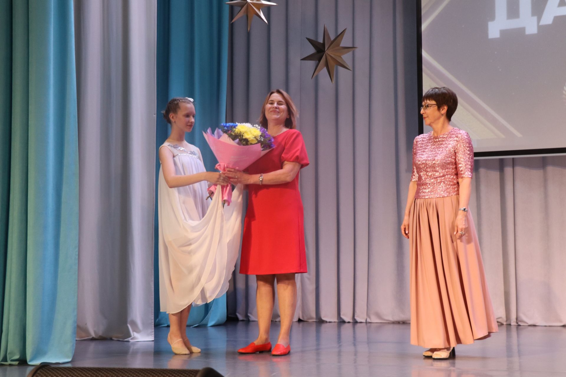 Были показаны видеопрезентации выпускников Юлии Хусаиновой, Ляйсан Мингазовой. На сцене ДШИ также выступили выпускницы Айсылу Касимова, Дарья Башарова, порадовав гостей своими вокальными данными. Все выступления были тепло встречены зрителями. Юбилейный концерт «Дайяны» прошёл на «ура»!